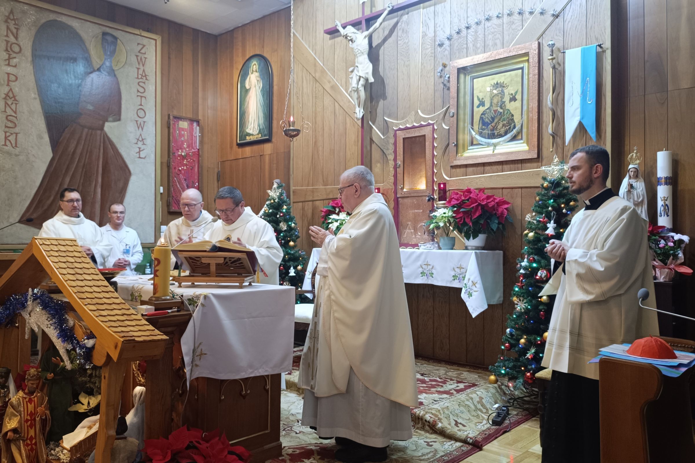 Choć nie było tym razem możliwości przejścia „z kolędą” po oddziałach oraz osobistego spotkania z wszystkimi pacjentami i personelem, kardynał chciał być obecny w miejscu, gdzie w sposób szczególny potrzeba nadziei, pokrzepienia i duchowej siły i zrobić to, co jest możliwe. Dlatego w kaplicy szpitalnej odprawił Mszę św. w intencji pacjentów, ich rodzin, całego personelu oraz we wszystkich tych intencjach, które przynieśli ze sobą przybyli na Eucharystię.