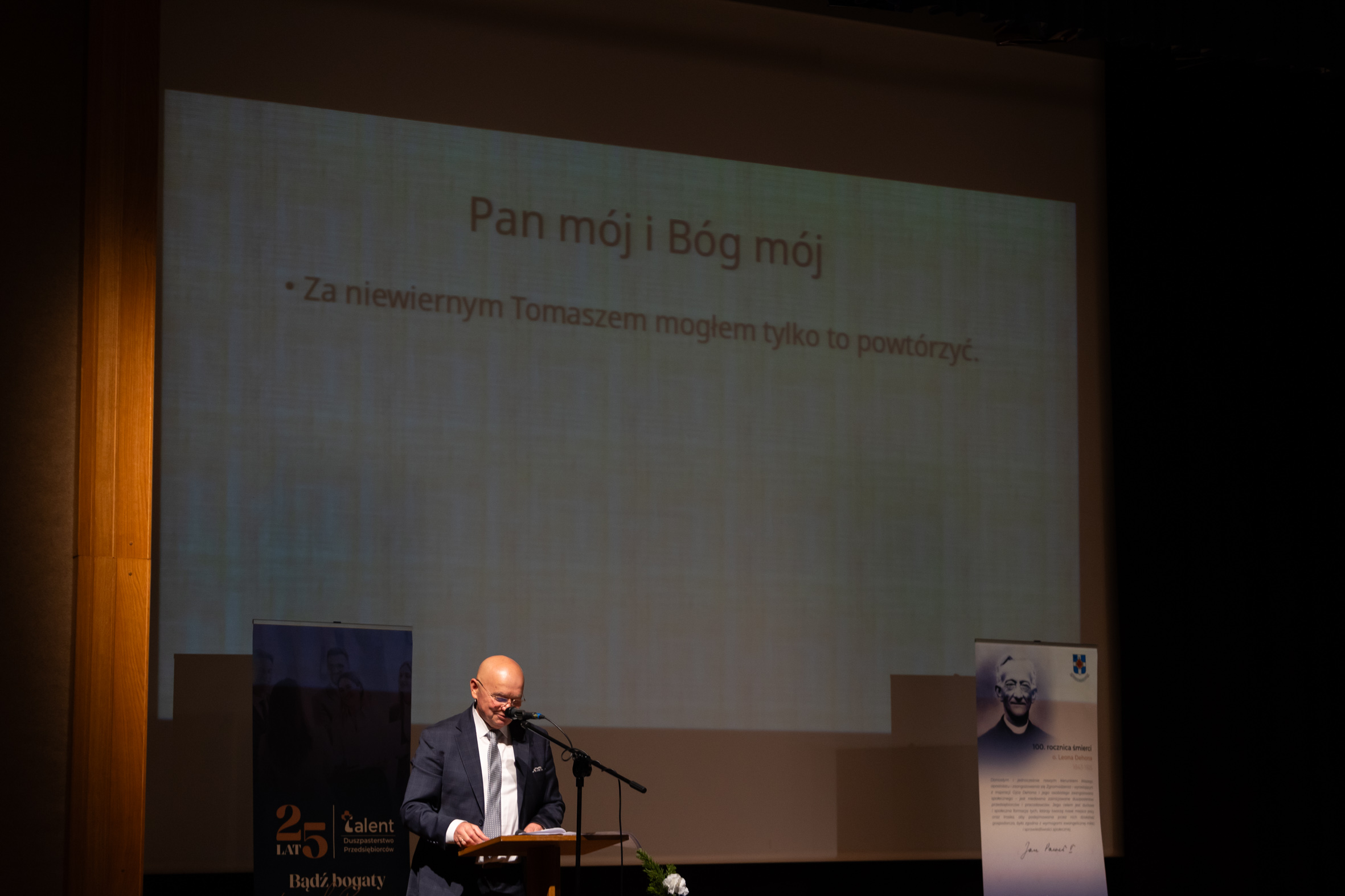 Zebranych w bazylice przywitał ks. Zbigniew Bielas. – Drodzy Uczestnicy Jubileuszu XXV-lecia Duszpasterstwa „Talent” i Pielgrzymki Przedsiębiorców i Pracodawców! Już po raz dwudziesty pierwszy przybywacie do Sanktuarium Bożego Miłosierdzia, aby w tym miejscu rozwijać wyobraźnię miłosierdzia i umacniać troskę, by Wasza działalność była zgodna z wymogami ewangelicznej miłości i sprawiedliwości społecznej. – dodał. „Bądź bogaty przed Bogiem” – to hasło, które towarzyszy Waszej tegorocznej pielgrzymce.