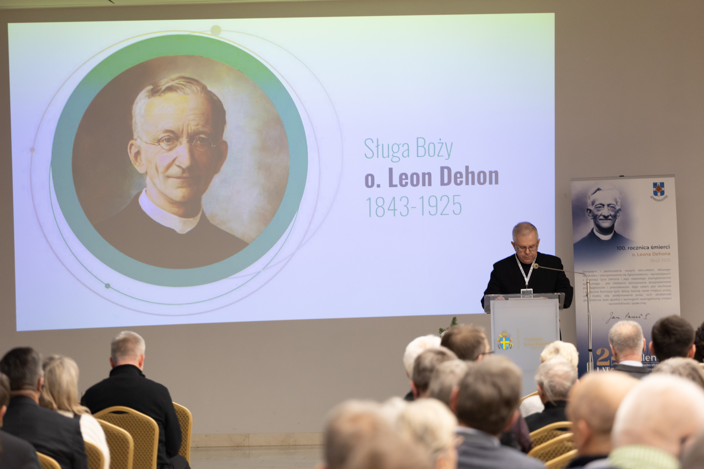 Pierwszym prelegentem, głoszącym wykład pt. „Świeccy w Kościele – lekcja ks. Leona Dehona”, był ojciec generał ks. Carlos Luis Suárez Codorniú SCJ. Na początku swej prelekcji podziękował on z serca organizatorom z duszpasterstwa Talent i polskiemu przełożonemu Generalnemu za obecność, ponieważ to wydarzenie nie stało się samą celebracją 25 lat projektów duszpasterskich, ale było przykładem nieprzemijającego charyzmatu i żywotności myśli Założyciela. Ojciec Leon miał szczególną relację ze świeckimi. Bóg po stworzeniu chciał, by mężczyzna i kobieta byli współbohaterami dzieła Stworzenia. Dlaczego Bóg lubi współpracować? Bo sam jest współpracą z Synem i Duchem Świętym w Dziele Trójcy Świętej. To, czego nas uczy Bóg, to służba i szacunek dla drugich. Ojciec Leon w swoim życiu i swoich dziełach bardzo dużo pisał o Trójcy Świętej, a darem który otrzymał od Boga chciał się dzielić z bliźnimi. Dziś dzieci duchowe Leona Dehona, sercanie, żyją tą myślą. „Każdy z nas ma inny talent, ale wszyscy powinniśmy swoimi zdolnościami służyć bliźnim” mówił Generał, który w dalszej części podjął próbę odpowiedzi na pytanie, w jaki sposób możemy poznać drugiego człowieka bez niszczenia go? Podkreślił też, że Ojciec Dehon zawsze brał pod uwagę, że świeccy maja ogromną rolę do odegrania w społeczeństwie i włączał ich w życie Kościoła.