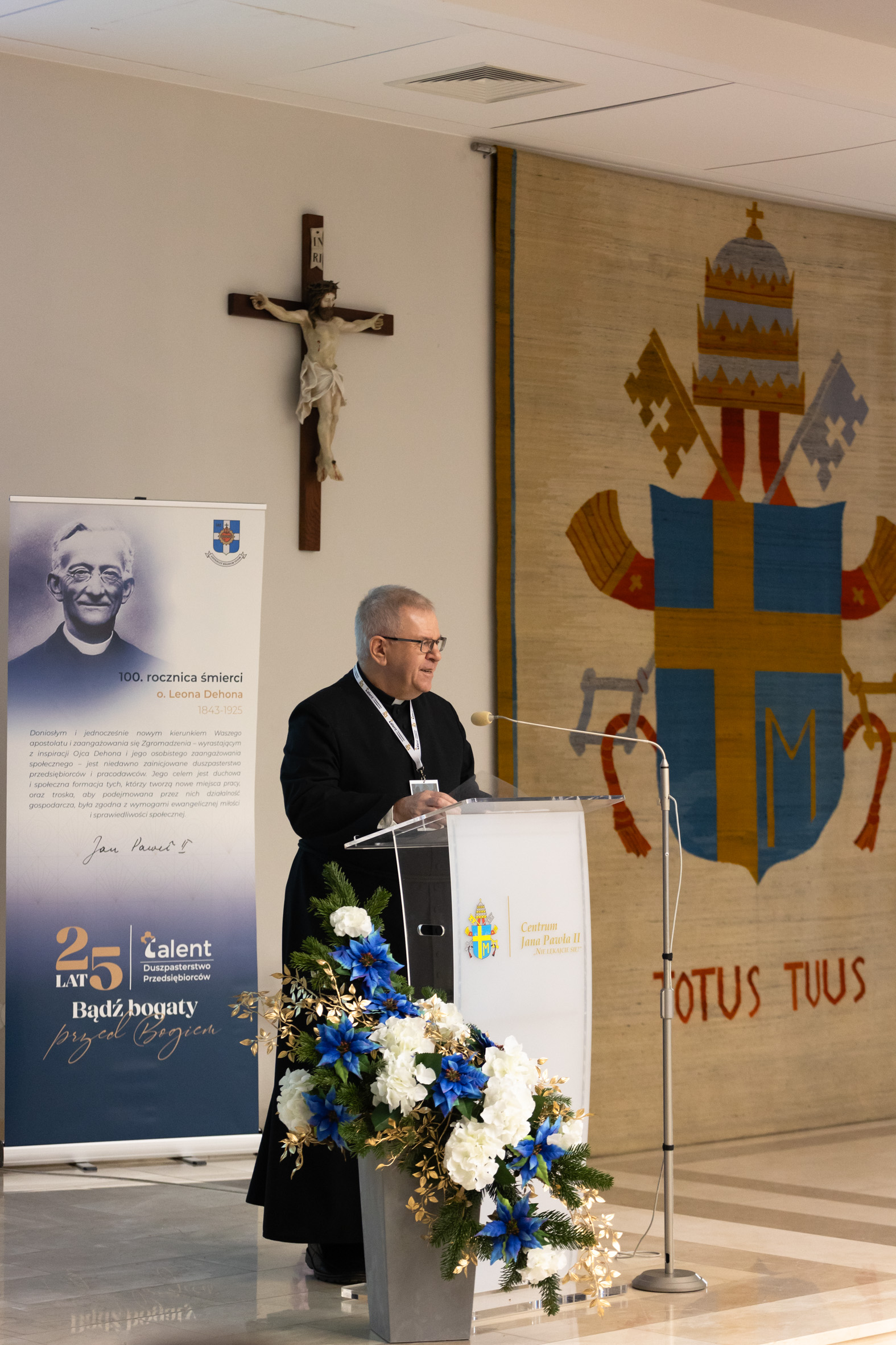 Spotkanie ludzi, którzy nie chcą zostawiać wiary pod drzwiami swoich biur... Ludzi, którzy chcąc być uczniami Chrystusa i naśladować Go, zadają sobie pytanie nie tylko o to, co oznacza dla nich bycie chrześcijaninem w życiu osobistym, ale pragną więcej: by wiara wpływała na filozofię ich firmy i sposób, w jaki ją prowadzą... W takim klimacie w Centrum Jana Pawła II „Nie lękajcie się” na Białych Morzach i w Sanktuarium Miłosierdzia Bożego trwały w dniach 7-8 grudnia 2024 roku obchody srebrnego jubileuszu działalności Duszpasterstwa Przedsiębiorców i Pracodawców TALENT przebiegające pod hasłem „Bądź bogaty przed Bogiem”, które wpisały się w zainaugurowanie świętowania w latach 2024-2028 jubileuszu 100-lecia śmierci Ojca Leona Dehona (przypadającej 12 lipca 2025).