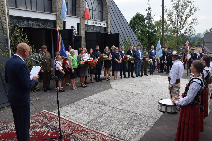 Na koniec wójt Gminy Mszana Dolna Mirosław Cichorz, współgospodarz uroczystości, podziękował przedstawicielom władz samorządowych, instytucji państwowych, duchownym, orkiestrze „Echo Gór” z Kasinki Małej, chórowi im. ks. Józefa Hajduka z Mszany Dolnej, pocztom sztandarowym OSP i miejscowej szkoły.