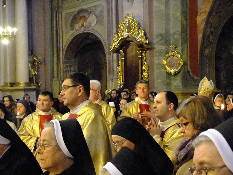 Natomiast tradycyjnie dnia 2 lutego przeżywaliśmy Dzień Życia Konsekrowanego, który zawsze wypada w święto Ofiarowania Pańskiego. W tym dniu, oprócz świątecznego obiadu i wspólnej kawy wzięliśmy udział w uroczystej Mszy św. koncelebrowanej przez Ordynariusza i biskupów pomocniczych naszej diecezji, jak również przedstawicieli różnych wspólnot zakonnych.