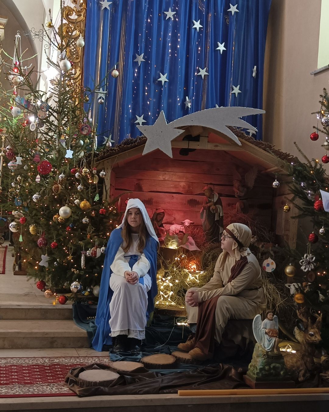 Młodzi aktorzy, pod czujnym okiem swoich duszpasterzy – ks. Marka Skórskiego SCJ, proboszcza i ks. Dariusza Motyki SCJ, wikariusza – wprowadzili zgromadzonych w atmosferę Bożego Narodzenia. Dzieci z wielkim zaangażowaniem wcieliły się w biblijne postacie, w rolę Maryi, Józefa, aniołów, pasterzy, mędrców. Nie zabrakło też wspólnego śpiewu kolęd, które rozbrzmiewały w kościele, budząc radość, refleksje oraz zadumę wśród licznie zgromadzonych. Na zakończenie ks. Proboszcz Marek Skórski podziękował dzieciom za ich trud i zaangażowanie, również rodzicom, którzy wspierali swoje dzieci w przygotowaniach, a także wszystkim zebranym.