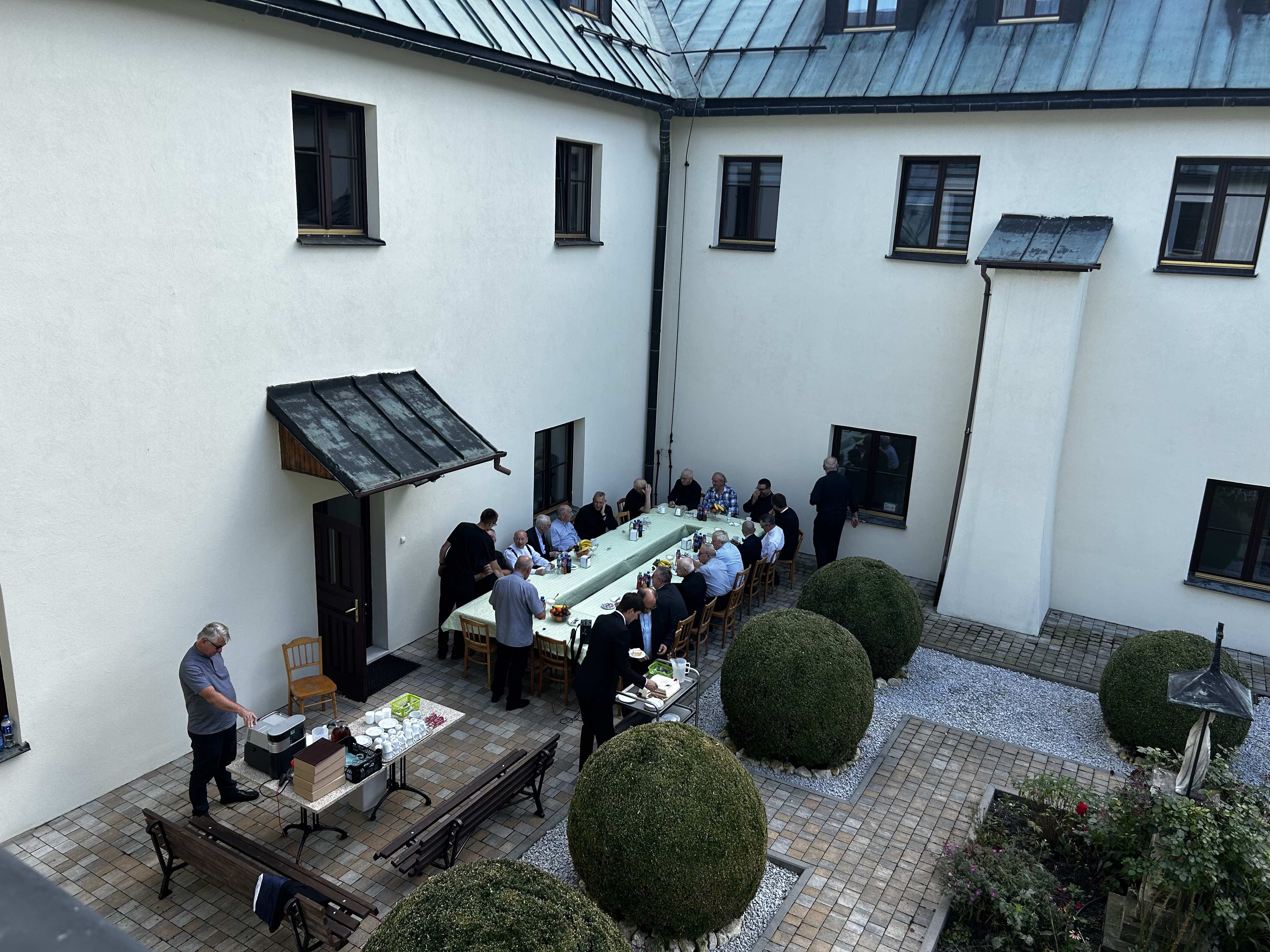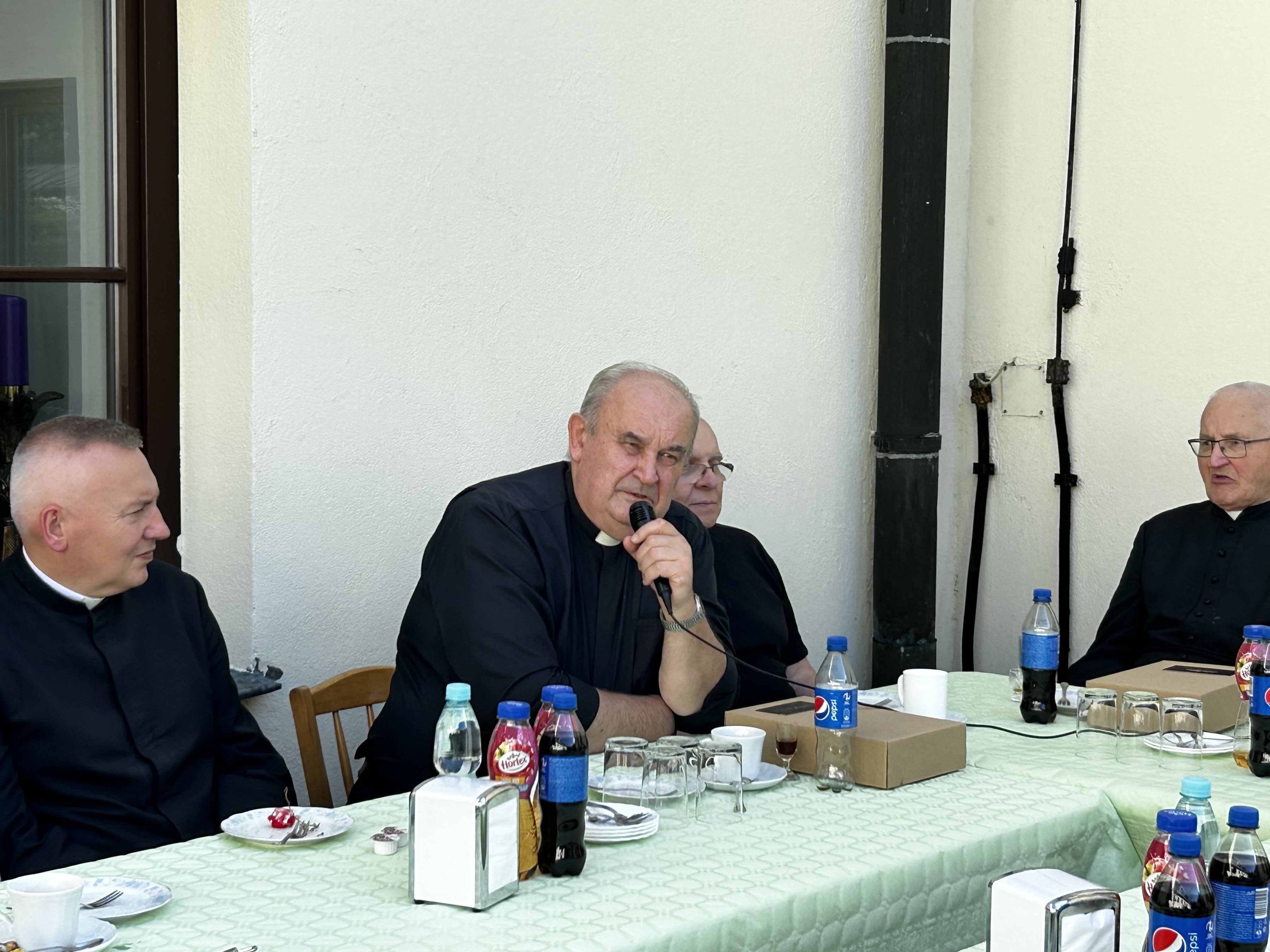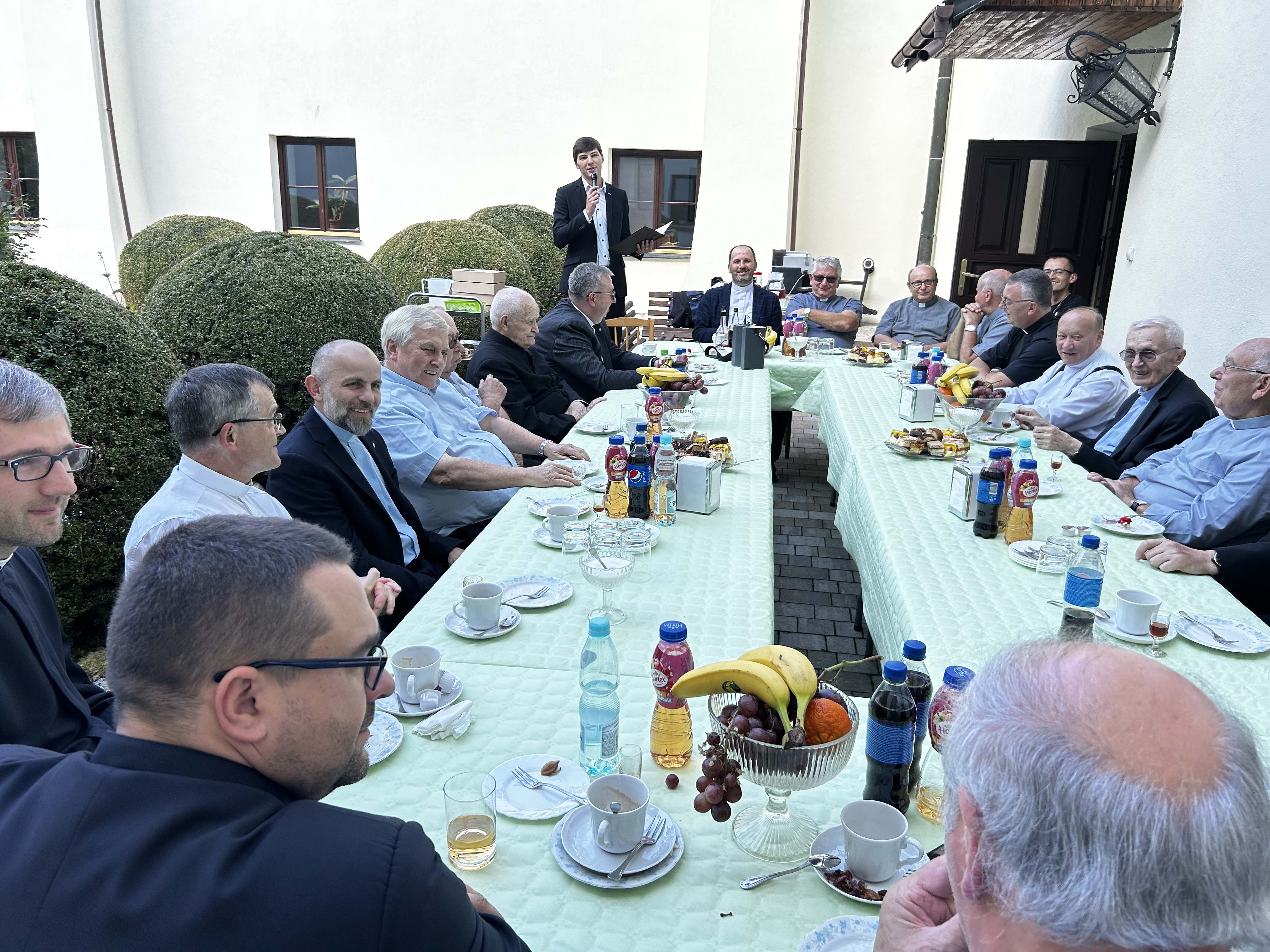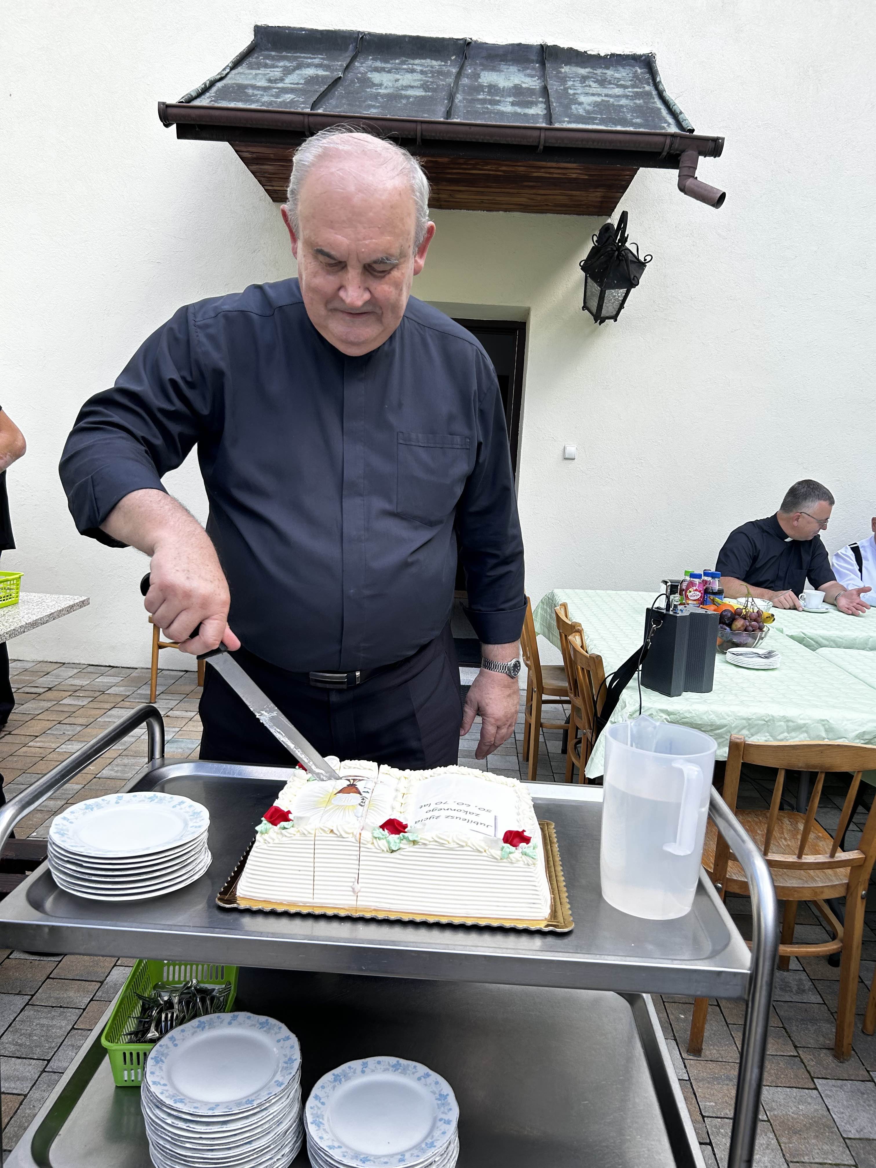 Wielu spośród nich nie wzięło udziału w uroczystościach jubileuszowych z powodu trudności związanych z podróżą (Indonezja, Ukarania, Chorwacja) oraz ze względu na stan zdrowia. Ostatecznie cieszyliśmy się obecnością 4 współbraci, którzy podczas Mszy św. na ręce prowincjała ks. Sławomira Knopika odnowili swoje śluby zakonne. Homilię wygłosił ks. Bogdan Kuta. Po uroczystym obiedzie spotkaliśmy się w klasztornym wirydarzu, aby skosztować jubileuszowego tortu, bliżej poznać sylwetki naszych dostojnych jubilatów, powspominać „stare dobre czasy” oraz wręczyć im drobne upominki. Za część artystyczną odpowiedzialny był nowicjusz Wojciech.