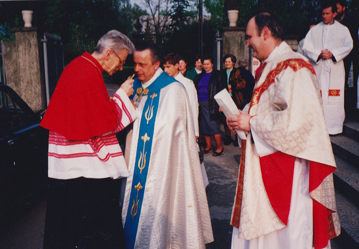 „To trochę zabawna historia. Wikary, który przyjeżdżał na katechezę zachęcał chłopców do służenia. Zgłosiłem się z kilkoma kolegami. Zdaliśmy po łacinie ministranturę i mieliśmy wyznaczony pierwszy dyżur o szóstej rano. Zegarka nie było w domu, więc obudził mnie tata, gdy piał kogut. Z duszą na ramieniu biegliśmy do kościoła, a tu wszystko pozamykane. I wtedy zobaczyliśmy na zegarze budynku liceum, że dopiero jest trzecia w nocy. Przed Mszą przyszedł ksiądz, postawił nas koło balasek i kazał obserwować. A my chcieliśmy sobie podzwonić, podać kielich, przynieś mszał. To nas zniechęciło i nie pokazaliśmy się więcej – wspominał ks. Niziołek swój pierwszy i jedyny dzień bycia ministrantem.