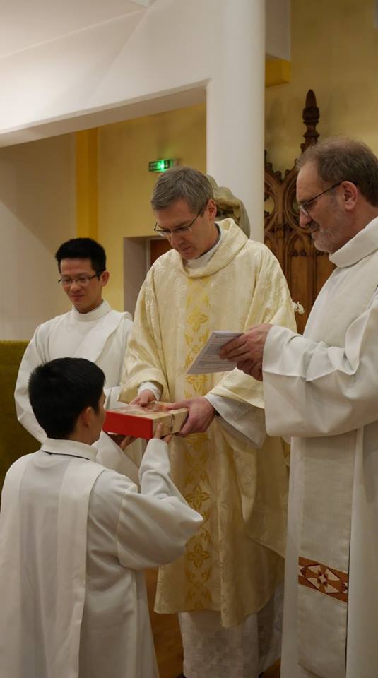 Podczas wieczornej Eucharystii w czwartek, we wspólnocie paryskiej, której przewodniczył przełożony generalny, współbracia mogli uczestniczyć we wprowadzeniu przez ks. Heinera posługę akolity i lektora kl. Wincentego Nguyena SCJ.
