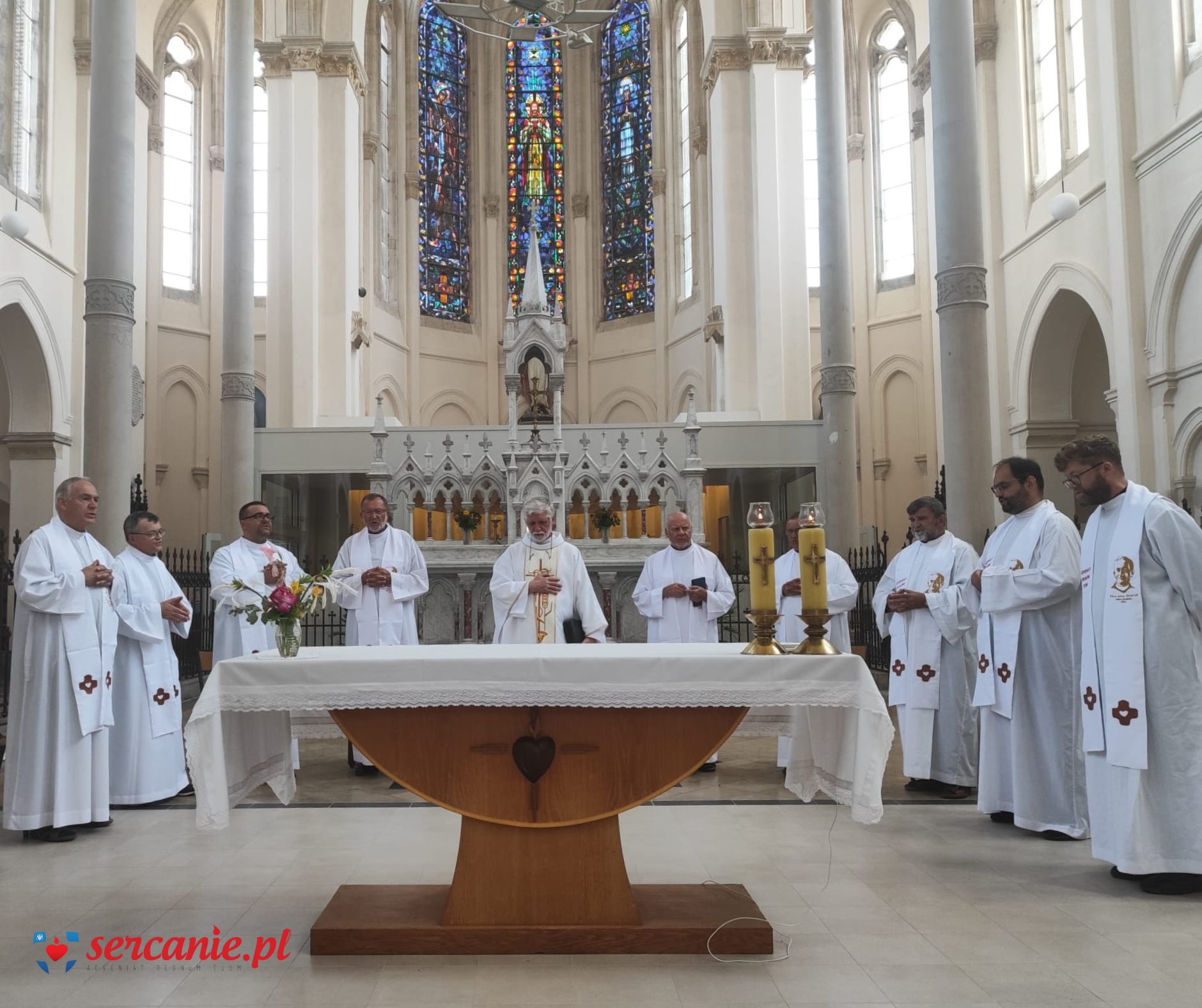 Ósmy dzień rozpoczęła Msza Święta w kaplicy domu brukselskiego, sprawowana przez ks. Jakuba, w 100-lecie śmierci ojca Założyciela. Dzień poświęcony był historii pierwszych ojców, zwłaszcza tych, którzy znali i wiedzieli o. Dehona, a których mieli szansę poznać uczestnicy pielgrzymki, szczególnie ks. Władysława Majkę, świadka śmierci sprzed wieku. Po śniadaniu grupa udała się do najstarszego domu, jaki nieustająco (od 1889) należy do Zgromadzenia, a który znajduje się w Clairefontaine na pograniczu Belgii i Luksemburga. Ks. Nico Turmes, ekonom prowincjalny EUF, oprowadził pielgrzymów po dawnej szkole Zgromadzenia dla Luksemburczyków, w której obecnie znajduje się centrum duchowo-konferencyjne. Po obiedzie konwój udał się do miasta Luksemburg, gdzie w katedrze nawiedził grób pierwszego następcy o. Dehona, bpa Józefa Philippe’a. Z lotniska w Luksemburgu ks. Jakub udał się do Rzymu, zaś dziewiątka pątników udała się do domu prowincji niemieckiej w Maria Martental koło Cochem w diecezji trewirskiej. W miejscowym kościele sanktuaryjnym odprawiona została adoracja.
