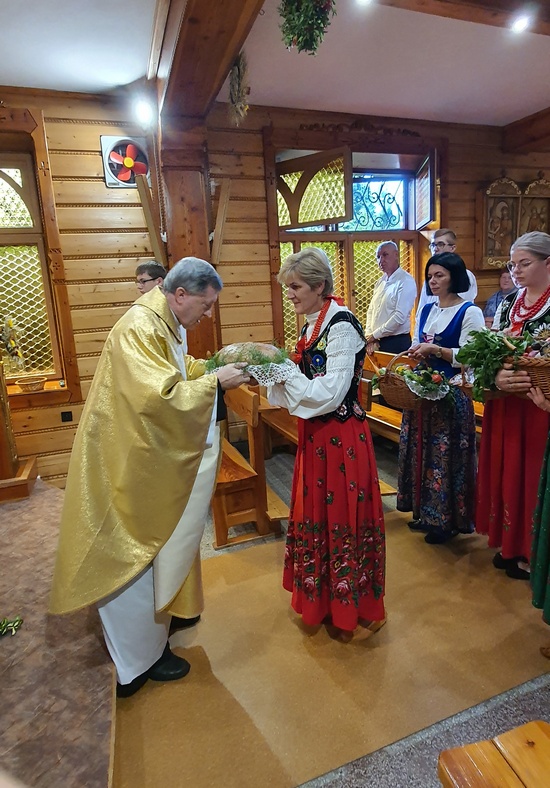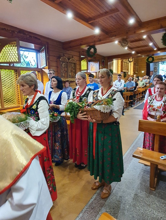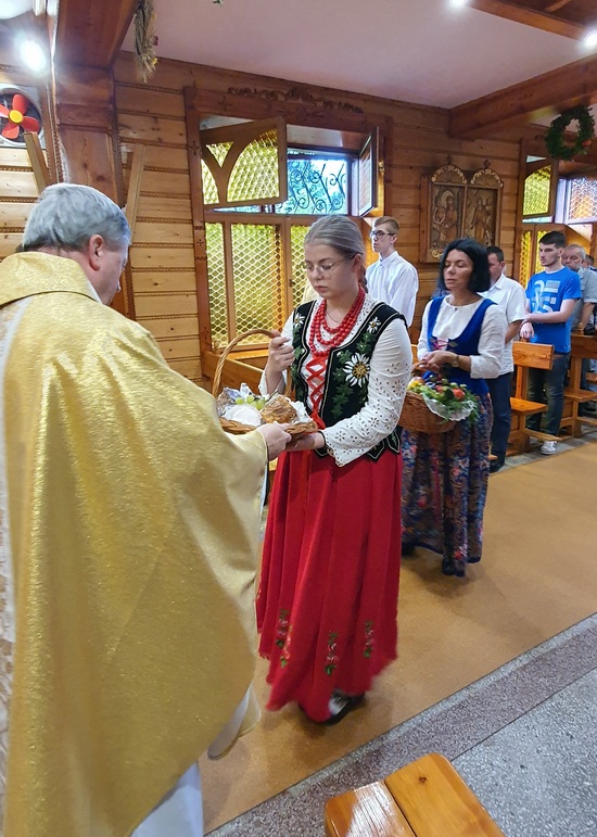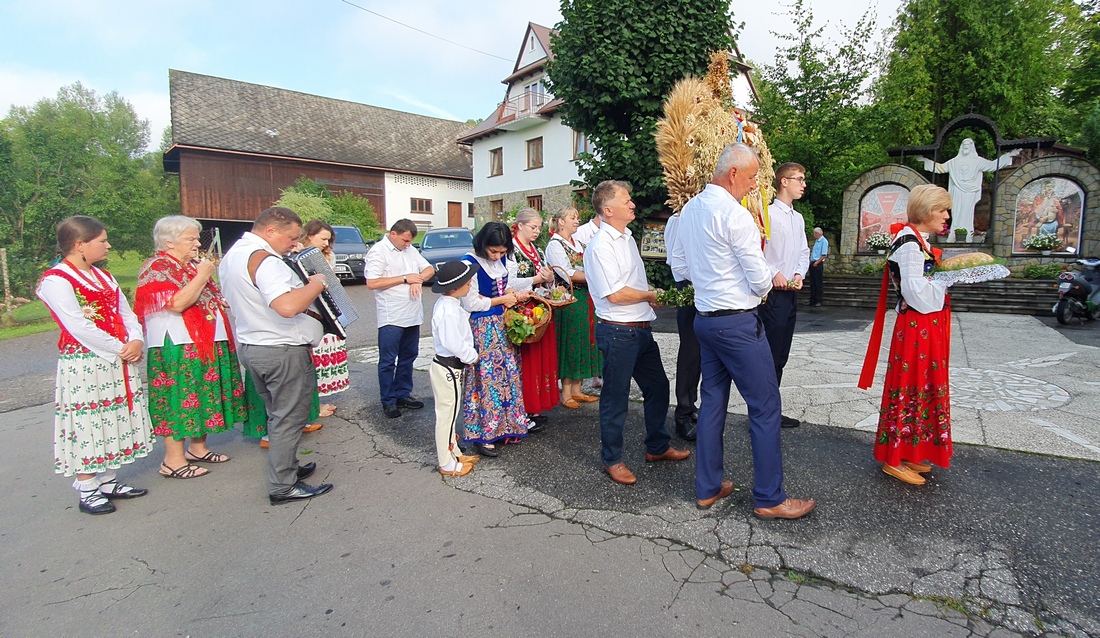 „Nasz Rodak nauczał, by nie odrzucać to, co łączy ludzi większych czy mniejszych społeczności wiejskich. Bo wieś zawsze była swego rodzaju rodziną i silna wiarą. I dopóki taka była, dopóty polska wieś była sobą, ubogacając Ojczyznę nie tylko żywnością, ale także tą kulturą, która trwa wciąż, a przeniesiona do miast nie przestaje zachwycać. Urzeka swoim pięknem, szczerością i prostotą” – podsumował kaznodzieja, który następnie pobłogosławił okazały wieniec żniwny, chleb i przyniesione przez mieszkańców os. Kiece koszyki pełne warzyw, owoców i innych produktów.