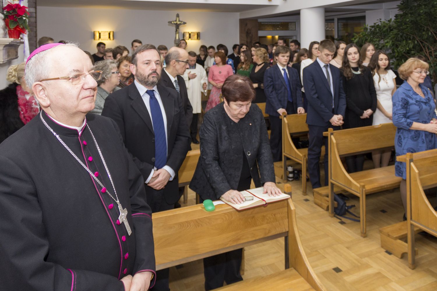Piękną tradycją Domu Fundacji Jana Pawła II w Lublinie są spotkania opłatkowe, które od wielu już lat gromadzą wyśmienitych gości i stypendystów Fundacji. Tegoroczny „Opłatek” odbył się 17 grudnia w godzinach popołudniowych. Spotkanie rozpoczęła Msza św. koncelebrowana pod przewodnictwem J.E. abpa Józefa Kowalczyka, prymasa Polski seniora. Koncelebransami byli: abp Mieczysław Mokrzycki, osobisty sekretarz św. Jana Pawła II i papieża Benedykta XVI, metropolita lwowski; ks. dr hab. Andrzej Kiciński, prof. KUL, Prorektor d.s. Studenckich; ks. Zdzisław Kozioł SCJ, przełożony sercańskiej wspólnoty w Lublinie; ks. Jan Strzałka SCJ, dyrektor Domu oraz księża stypendyści z Białorusi, Indonezji, Łotwy i Ukrainy.