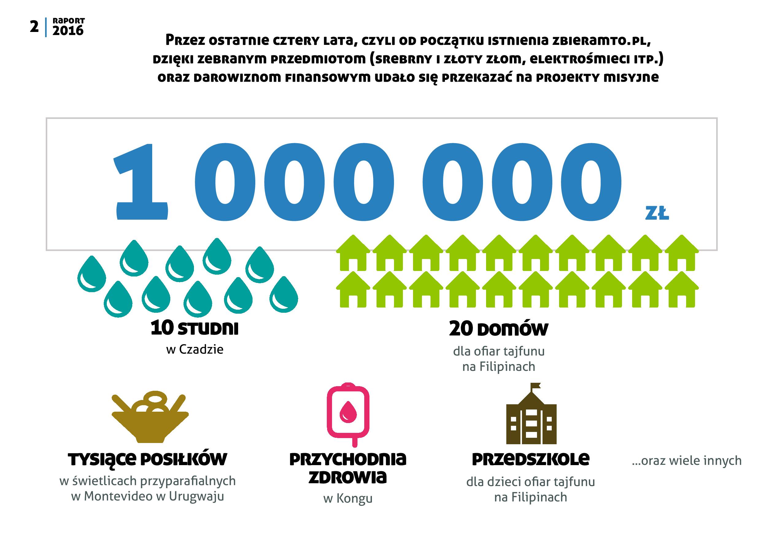 Po drugie, możemy pochwalić się również rozwojem inicjatyw „zbieraczych”. W październiku ruszyła „parafia z misją”, czyli zbiórki makulatury i innych surowców wtórnych przy kościołach. W listopadzie natomiast wystartował portal szkołazmisją. pl dedykowany naszej współpracy ze szkołami i przedszkolami z całej Polski. „Szkoły z misją” prowadzą różnorodne zbiórki przez nas proponowane. Uczymy w ten sposób dzieci i młodzież wrażliwości na środowisko naturalne i potrzeby ubogich. Ponadto szkoła czy przedszkole może odebrać nagrody w programie partnerskim.
