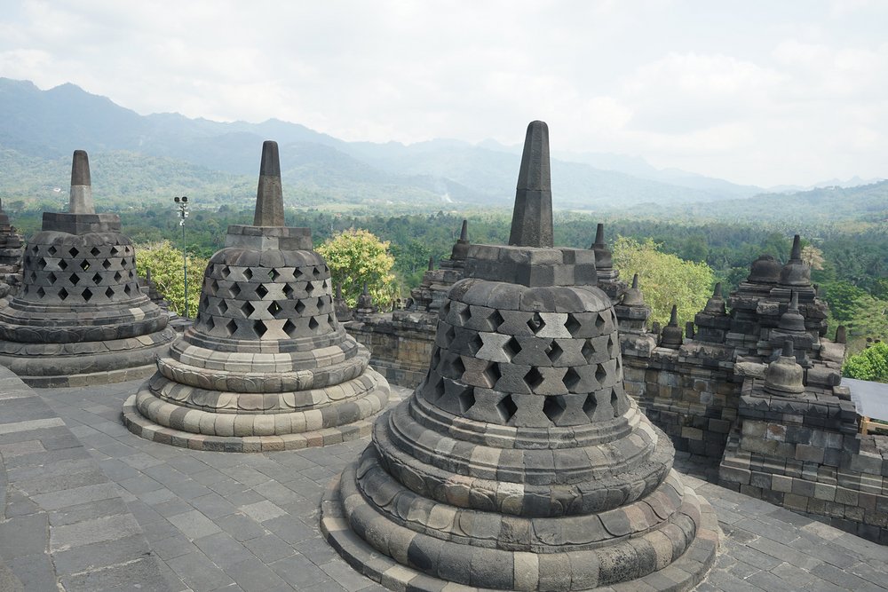 W towarzystwie dwóch przewodników uczestnicy zwiedzili świątynię Borobudur na szczycie. Świątynia Borobudur jest największą na świecie starożytną świątynią buddyjską, zbudowaną w IX wieku. Przewodnicy poprowadzili dwie grupy do góry, wyjaśniając drogę jaką podążał Budda: od ludzkich namiętności do nirwany (stan wewnętrznego pokoju i zjednoczenia z boską ideą).