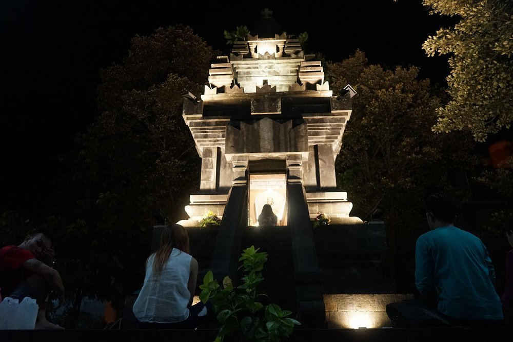 Była godz. 16:00, gdy rozpoczęto podróż do Sanktuarium Maryjnego i Sanktuarium Najświętszego Serca w Ganjuran. Po przybyciu do kościoła uczestnicy słuchali o historii kościoła i świątyni. Po niedawnym trzęsieniu ziemi kościół został odbudowany w stylu hindusko-jawajskim i prezentuje wiele symboli pochodzących z lokalnej kultury.