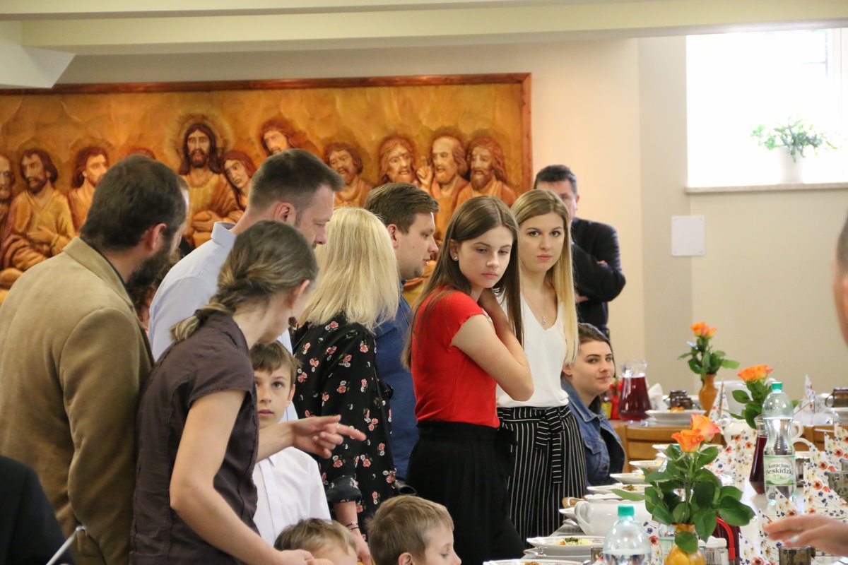 W dniu 6 maja 2018 roku w VI niedzielę wielkanocną miało miejsce pierwsze tegoroczne spotkanie rodziny misyjnej, na które przybyli zarówno goście reprezentujący rodziny naszych misjonarzy, jak też wolontariusze z naszego biura misyjnego w Lublinie oraz wolontariusze misji zagranicznych Missio Cordis. Towarzyszyła nam atmosfera gościnności zapewniona dzięki życzliwości stadnickiego seminarium, a także troska o wzrost i rozwój dzieła misyjnego naszej prowincji. Takie spotkania dają możliwość rozmowy na temat naszego zaangażowania misyjnego jak też wymiany opinii, budowania nowych relacji i poznania się wzajemnego pomiędzy ludźmi zaprzyjaźnionymi z naszym sekretariatem misji, naszych współpracowników i ich rodzin. W spotkaniu wzięło udział prawie 50 osób.