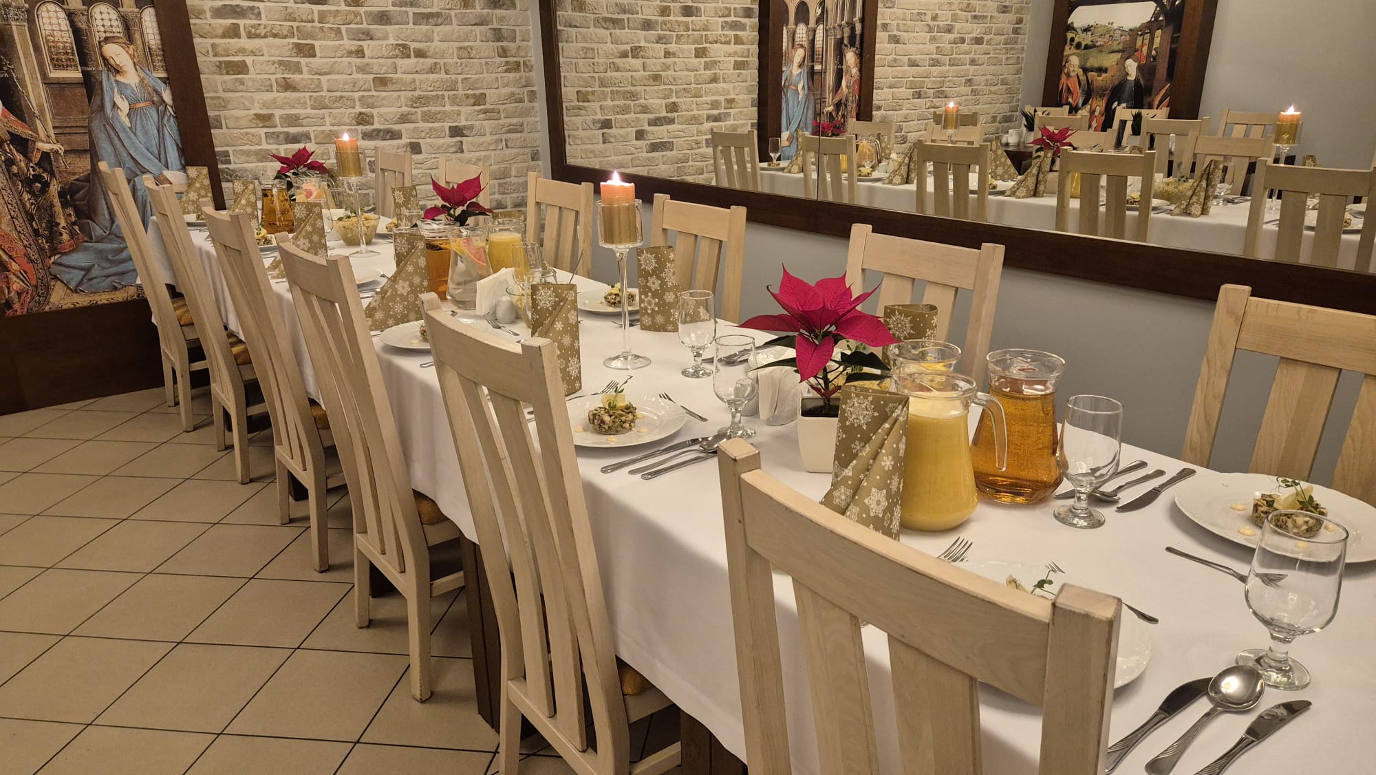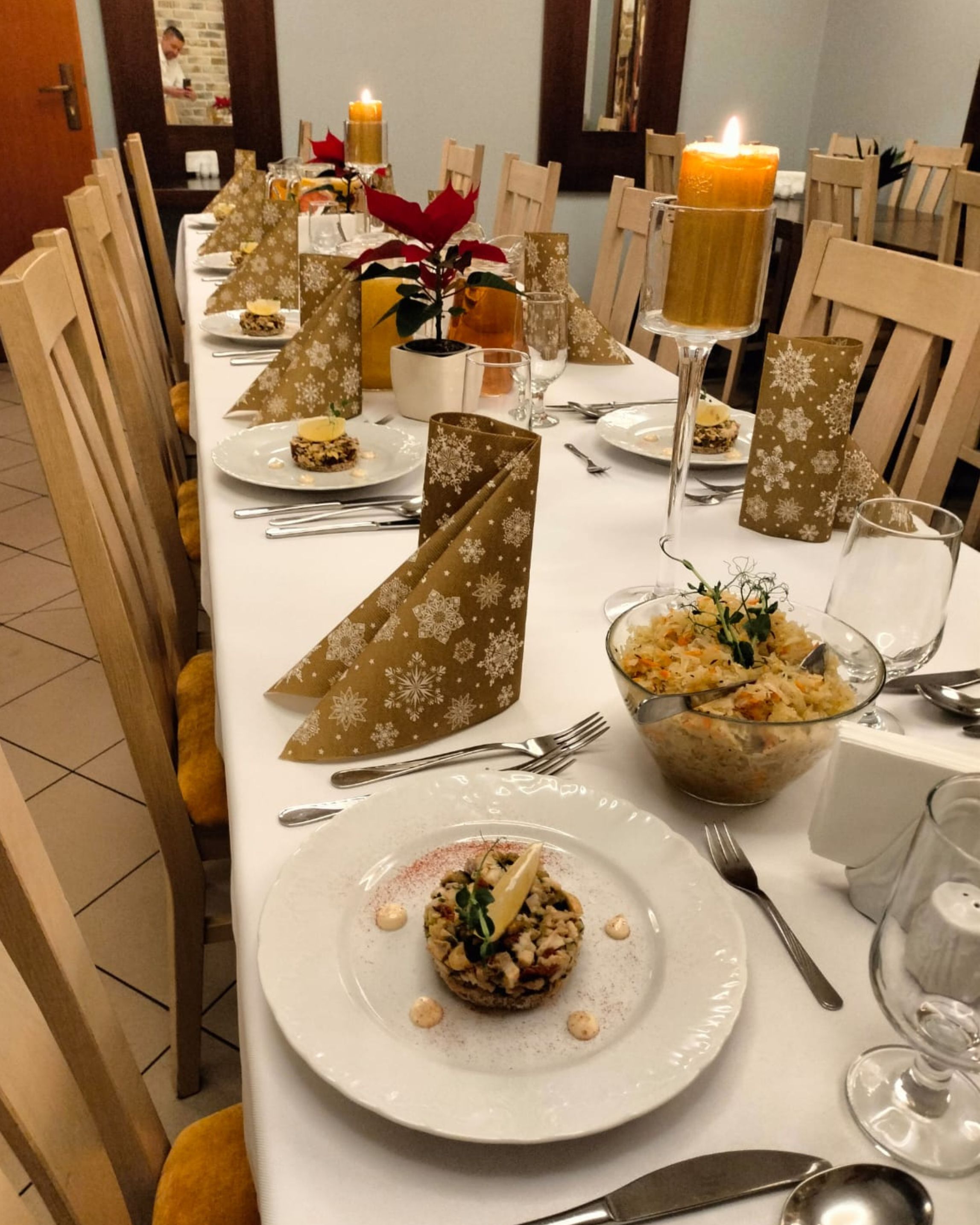 Święta w klasztorze nie są „odgrywaniem” tradycji, ale żywym doświadczeniem wspólnoty. Wigilia rozpoczyna się adoracją Najświętszego Sakramentu, połączoną z nieszporami i ostatnim dniem nowenny do Dzieciątka Jezus. Dopiero potem uczestnicy schodzą do sali konferencyjnej, gdzie rozpoczyna się wieczerza wigilijna, czytanie Pisma Świętego i dzielenie się opłatkiem.