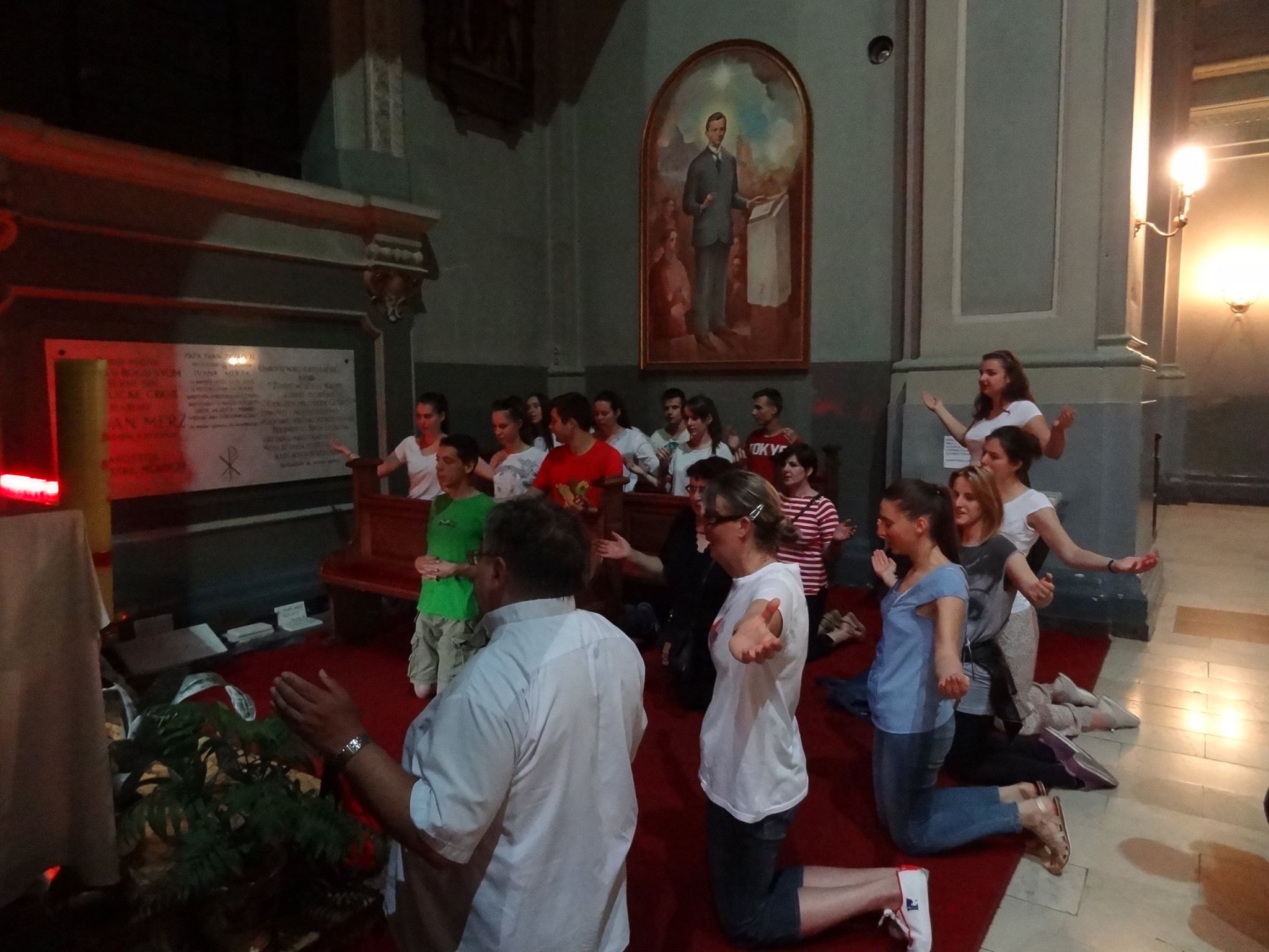 Młodzież, która należy do założonej przed czternastu laty wspólnoty HDM jest poświęcona Sercu Jezusowemu. Pełni radości i z modlitwą na ustach pokonywali dwugodzinną drogę ulicami miasta Zagrzebia. Po przybyciu na miejsce uczestniczyli we Mszy świętej, którą odprawiał ojciec duchowny HDM w Chorwacji – ks. Andrzej Wośko SCJ razem z ks. Arturem Makarą SCJ, który chętnie przyłączył się do pielgrzymkowej grupy. Po Mszy świętej dziękczynnej młodzież HDM na kolanach przeszła wokół głównego ołtarza Serca Jezusowego czyniąc to w duchu wynagrodzenia, podobnie jak to czynił ojciec Dehon. Pod koniec pobytu w bazylice cała grupa zebrała się przy relikwii błogosławionego Jana Merza, patrona młodzieży, odmówiwszy klęcząc siedem Ojcze nasz z rozłożonymi na znak krzyż rękami, podobnie jak to czynią w czasie swoich cotygodniowych spotkań, kiedy modlą się w intencji kanonizacji Jana Merza.