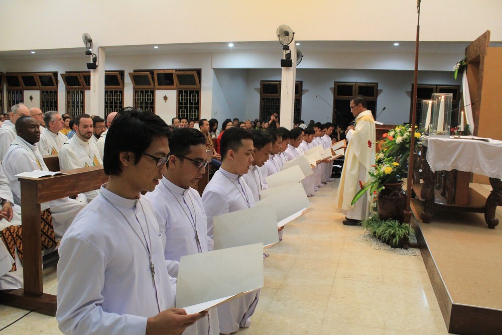 We Mszy świętej, któej przewodniczył przełożony prowincji indonezyjskiej (INA), ks. Alexander Sapta SCJ, udział wzięli nie tylko uczestnicy Międzynarodowego Seminarium Teologicznego, ale także 34 kleryków i jeden brat zakonny, którzy podczas Mszy odnowili swoje zakonne śluby. Wśród koncelebransów znalazł się także ks. Florentinus Heru Ismadi SCJ, wieloletni sekretarz generalny, który świętował 25 lat życia zakonnego oraz ks. Vincent Sri Herimanto SCJ, który rozpoczął posługę przełożonego Scholastykatu, zastępując na tym stanowisku ks. FX Tri Priyo Widarto SCJ. Uruczysta celebracja Mszy świętej została ubogacona śpiewem chóru, któremu towarzyszyła tradycyjna orkiestra "gamelan".