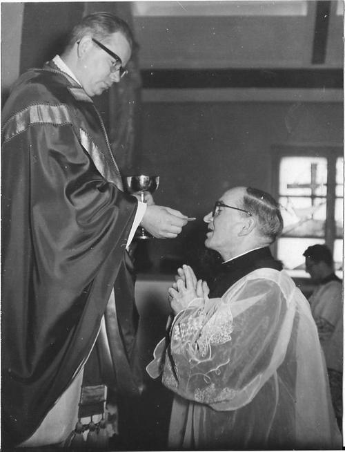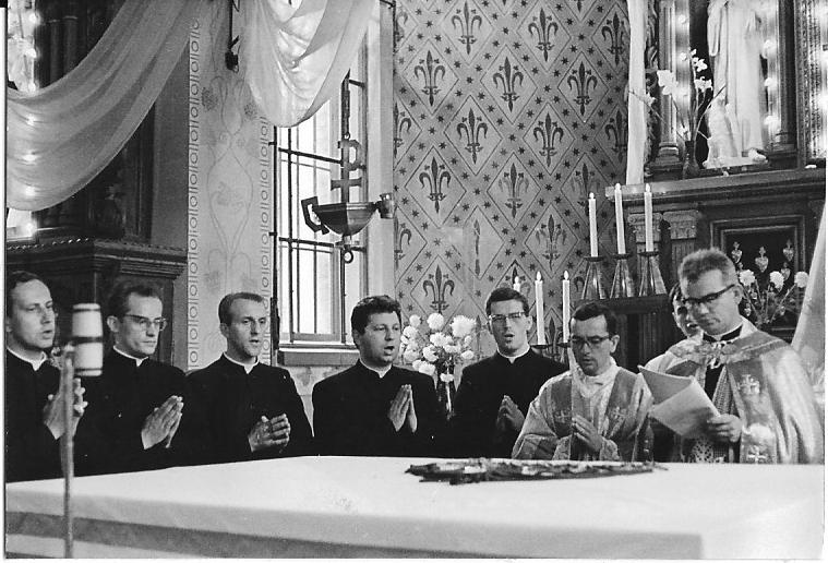 20 października 1963 roku. Kaplica domu płaszowskiego (Kraków-Płaszów). Nowy przełożony prowincjalny ks. Romuald SKOWRONEK SCJ składa „professio fidei” na ręce swego poprzednika ks. Stanisława Sidełki SCJ. Po przysiędze nowy prowincjał celebruje uroczystą Mszę św. w asyście swych radnych prowincjalnych: ks. Józefa Nawieśniaka SCJ (I radny) i ks. Wiktora Kubiny SCJ (IV radny).