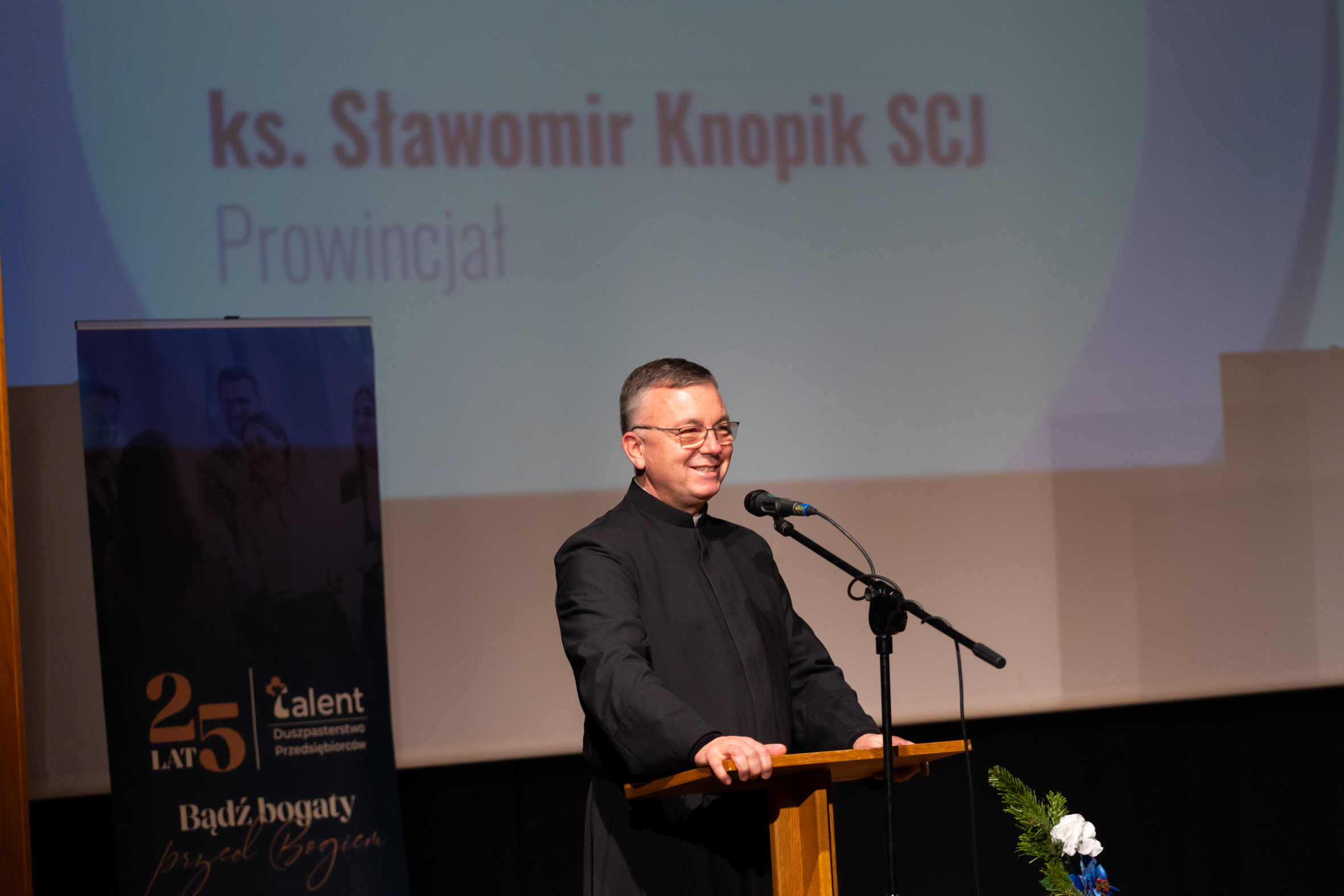Zebranych w bazylice przywitał ks. Zbigniew Bielas. – Drodzy Uczestnicy Jubileuszu XXV-lecia Duszpasterstwa „Talent” i Pielgrzymki Przedsiębiorców i Pracodawców! Już po raz dwudziesty pierwszy przybywacie do Sanktuarium Bożego Miłosierdzia, aby w tym miejscu rozwijać wyobraźnię miłosierdzia i umacniać troskę, by Wasza działalność była zgodna z wymogami ewangelicznej miłości i sprawiedliwości społecznej. – dodał. „Bądź bogaty przed Bogiem” – to hasło, które towarzyszy Waszej tegorocznej pielgrzymce.