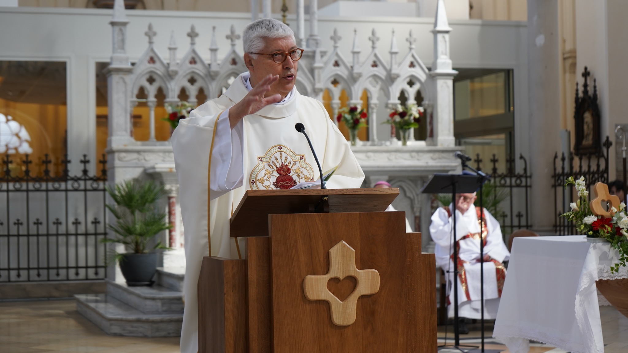 Szczególnym punktem obchodów była liturgia 10 sierpnia w parafii Saint-Martin w Saint-Quentin, gdzie spoczywają szczątki Założyciela. Mszy Świętej przewodniczył biskup Renauld de Dinechin, ordynariusz diecezji Soissons, Laon i Saint-Quentin, a homilię wygłosił Przełożony Generalny, o. Carlos Luis Suárez Codorniú SCJ. W uroczystości uczestniczyli nie tylko Wyżsi Przełożeni i liczni księża, ale także wierni świeccy oraz członkowie rodziny Dehonów. Wydarzenie miało także wymiar lokalny – stanowiło uroczyste otwarcie kościoła po trzech latach prac renowacyjnych. Jak podkreślił biskup Dinechin, „czujemy, że coś odradza się w duszy tego kościoła”.