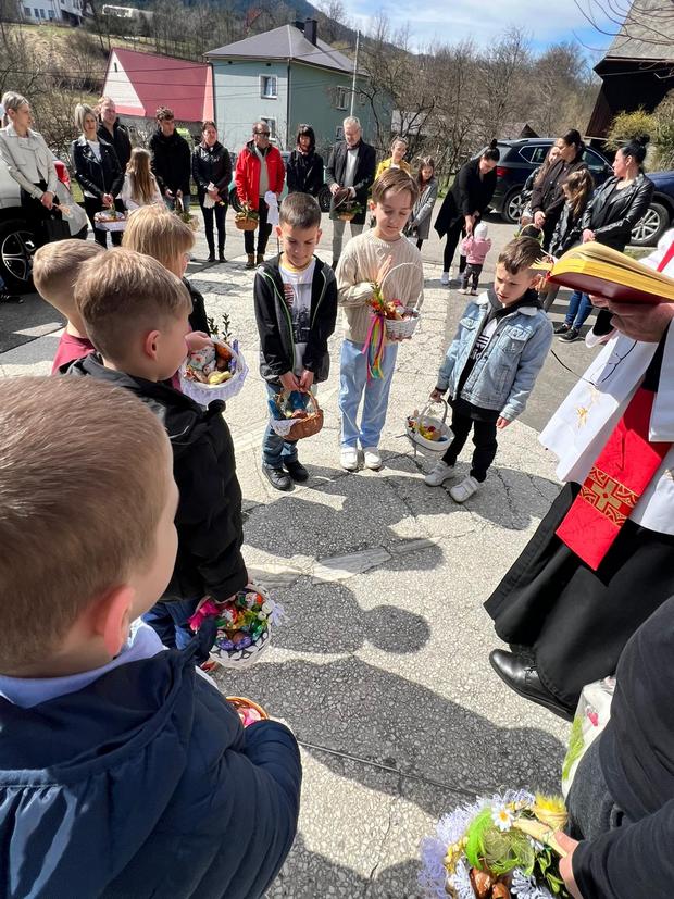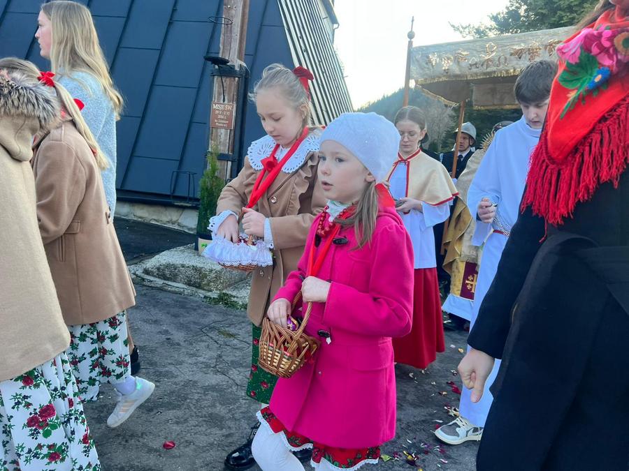Przybyli na Rezurekcję mieszkańcy wsi i okolic gromko zaśpiewali jedną z najstarszych pieśni wielkanocnych – „Wesoły nam dziś dzień nastał…”, a dzieci przed niesionym Najświętszym Sakramentem sypały wiosenne kwiaty na cześć Zmartwychwstałego.