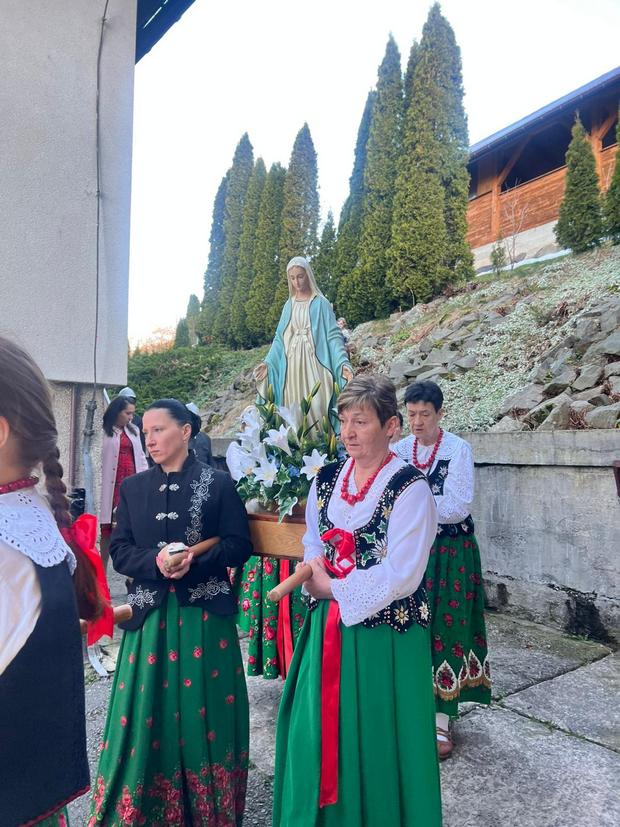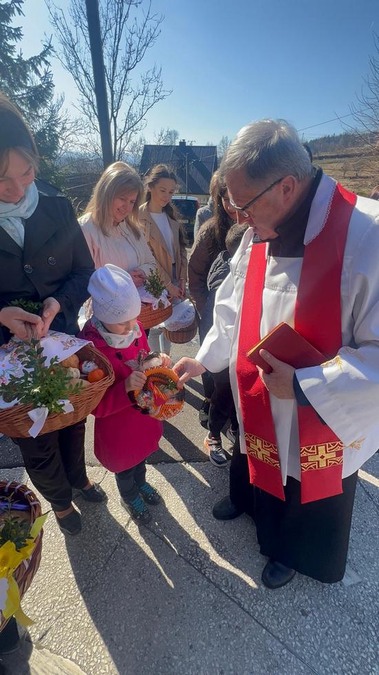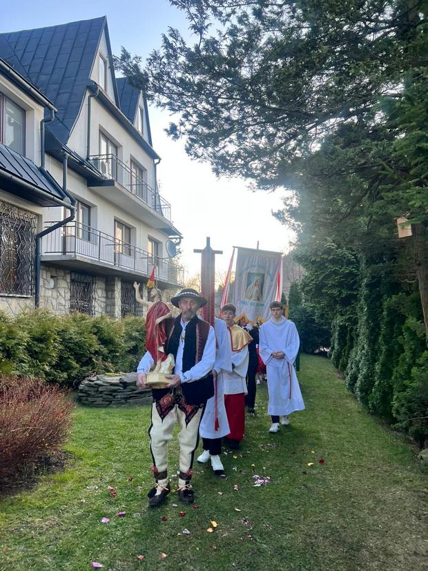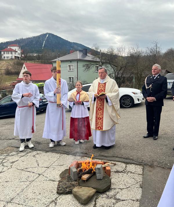 Wieczorem celebrowana była Wigilia Paschalna – najważniejsza liturgia w roku. I choć gliśniańską świątynię wypełniło już radosne orędzie wielkanocne, to zgodnie z niemal 50-letnią w tym miejscu tradycją, rezurekcyjna procesja wokół kościoła miała miejsce w poranek niedzielny.