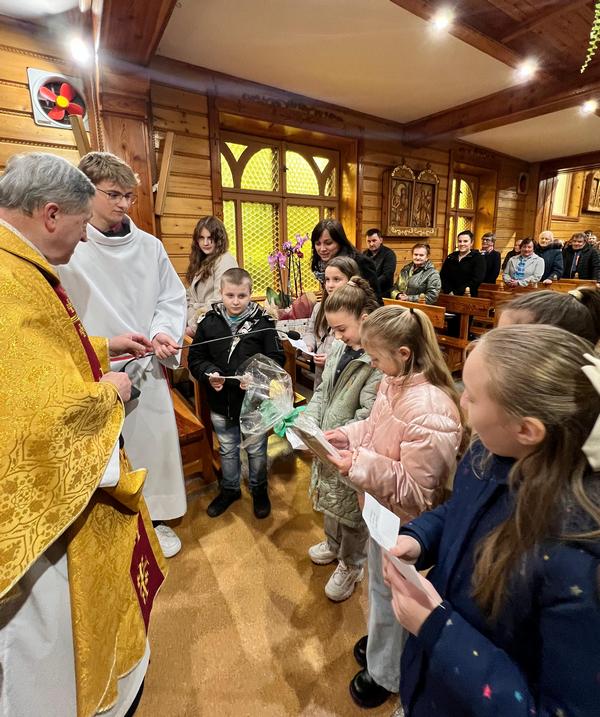 „Jako wspólnota, jednoczymy się dziś, aby wyrazić nasza głęboką i szczerą wdzięczność za to, że dzięki Twojej posłudze możemy posilać się Chlebem z Wieczernika i codziennie doświadczać obecności Pana w naszym życiu” – powiedziała w imieniu mieszkańców wsi Maria Płoskonka pod adresem duszpasterza spod Lubonia Wielkiego. Życzenia z racji pamiątki ustanowienia kapłaństwa w Wielki Czwartek złożyli także ministranci, schola i dzieci przygotowujące się do pierwszej spowiedzi i Komunii św. A w podarowanej pamiątce napisali: „Dziękujemy za Twoje serce i dłonie namaszczone, przez które niebo dla nas zostaje otworzone”.