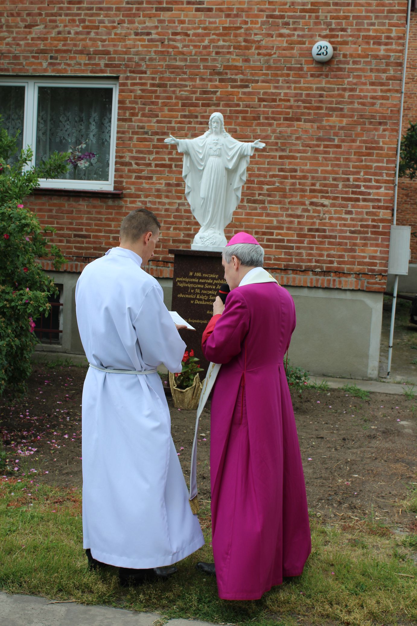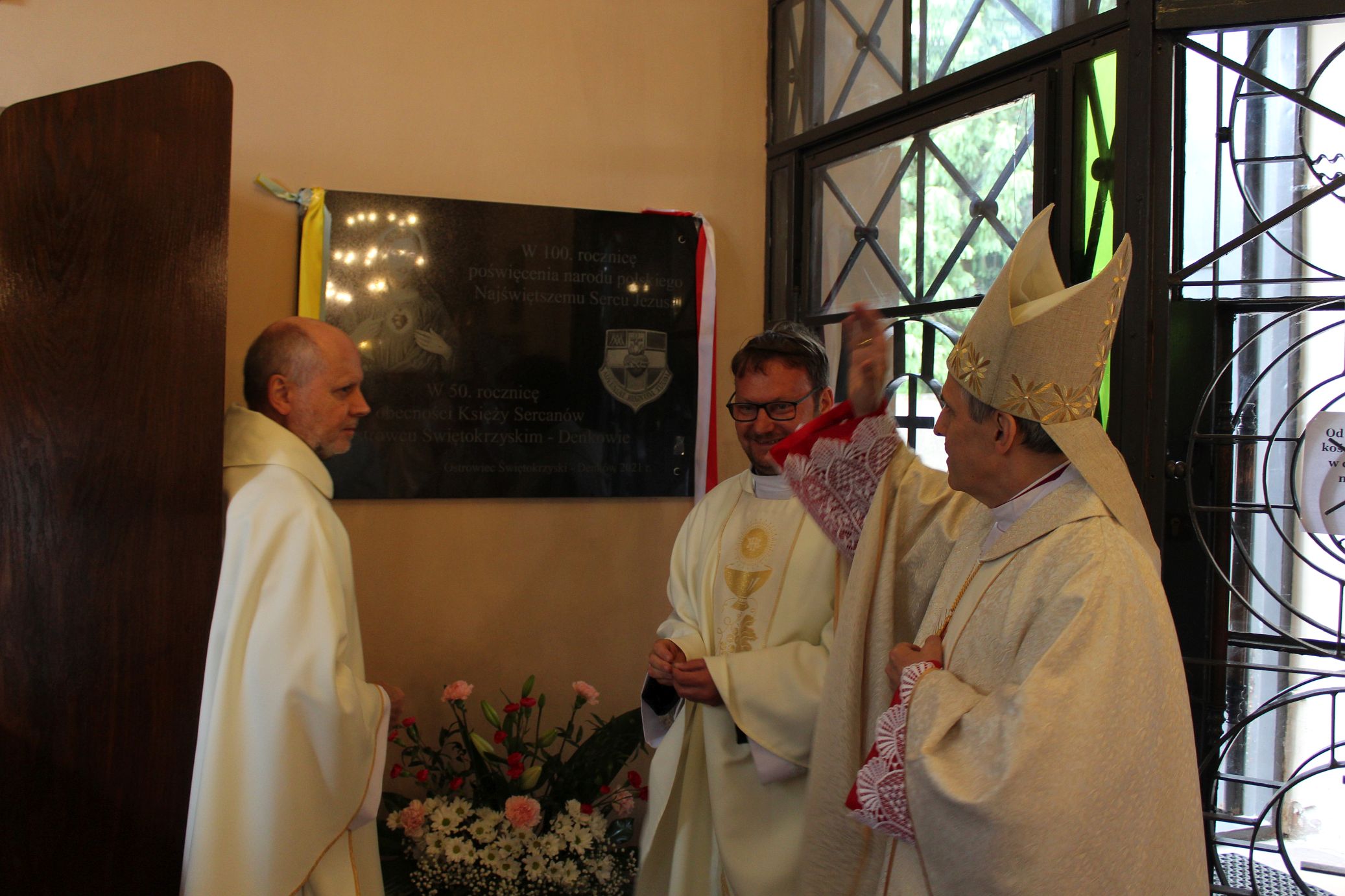 Po mszy świętej, w przedsionku kościoła odsłonięto tablicę upamiętniającą półwiekową obecność Księży Sercanów w Denkowie. Natomiast przy wejściu na plebanię ksiądz biskup Krzysztof Nitkiewicz poświęcił figurę Najświętszego Serca Pana Jezusa, którą ufundowali Księża ze Zgromadzenia Najświętszego Serca Jezusowego, jako wotum wdzięczności.