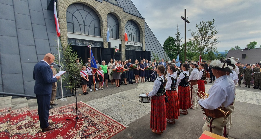 Na koniec wójt Gminy Mszana Dolna Mirosław Cichorz, współgospodarz uroczystości, podziękował przedstawicielom władz samorządowych, instytucji państwowych, duchownym, orkiestrze „Echo Gór” z Kasinki Małej, chórowi im. ks. Józefa Hajduka z Mszany Dolnej, pocztom sztandarowym OSP i miejscowej szkoły.