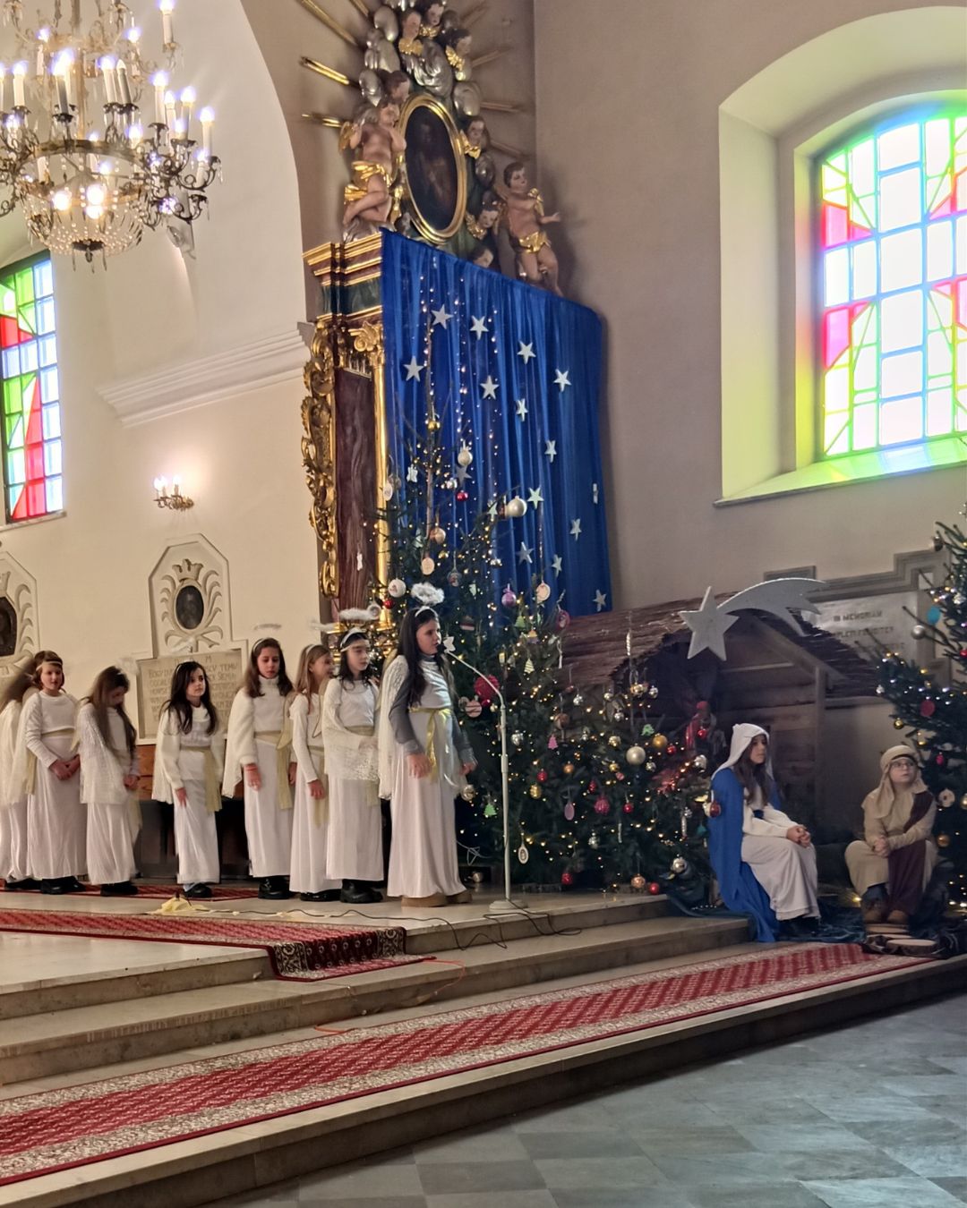 Młodzi aktorzy, pod czujnym okiem swoich duszpasterzy – ks. Marka Skórskiego SCJ, proboszcza i ks. Dariusza Motyki SCJ, wikariusza – wprowadzili zgromadzonych w atmosferę Bożego Narodzenia. Dzieci z wielkim zaangażowaniem wcieliły się w biblijne postacie, w rolę Maryi, Józefa, aniołów, pasterzy, mędrców. Nie zabrakło też wspólnego śpiewu kolęd, które rozbrzmiewały w kościele, budząc radość, refleksje oraz zadumę wśród licznie zgromadzonych. Na zakończenie ks. Proboszcz Marek Skórski podziękował dzieciom za ich trud i zaangażowanie, również rodzicom, którzy wspierali swoje dzieci w przygotowaniach, a także wszystkim zebranym.