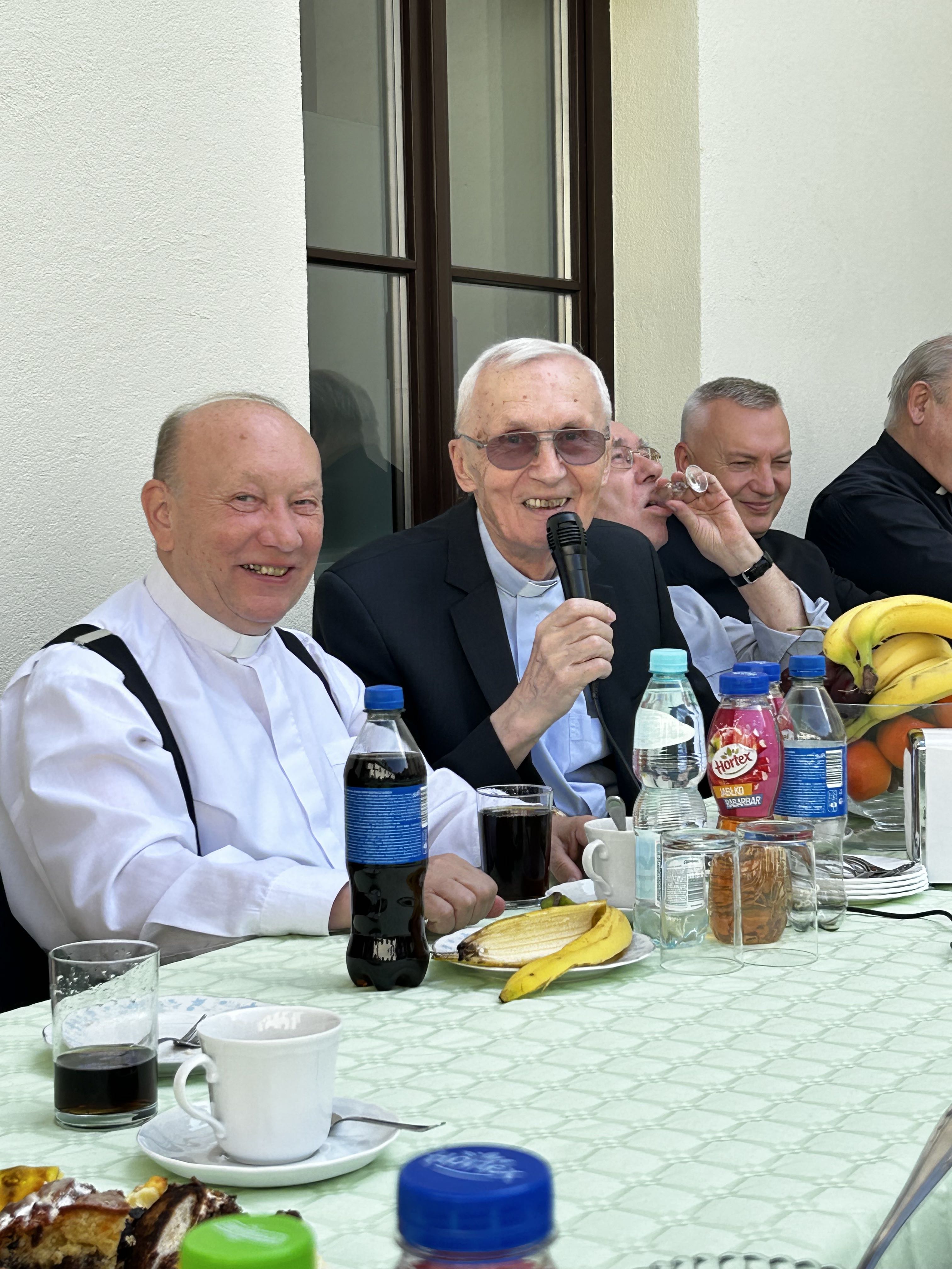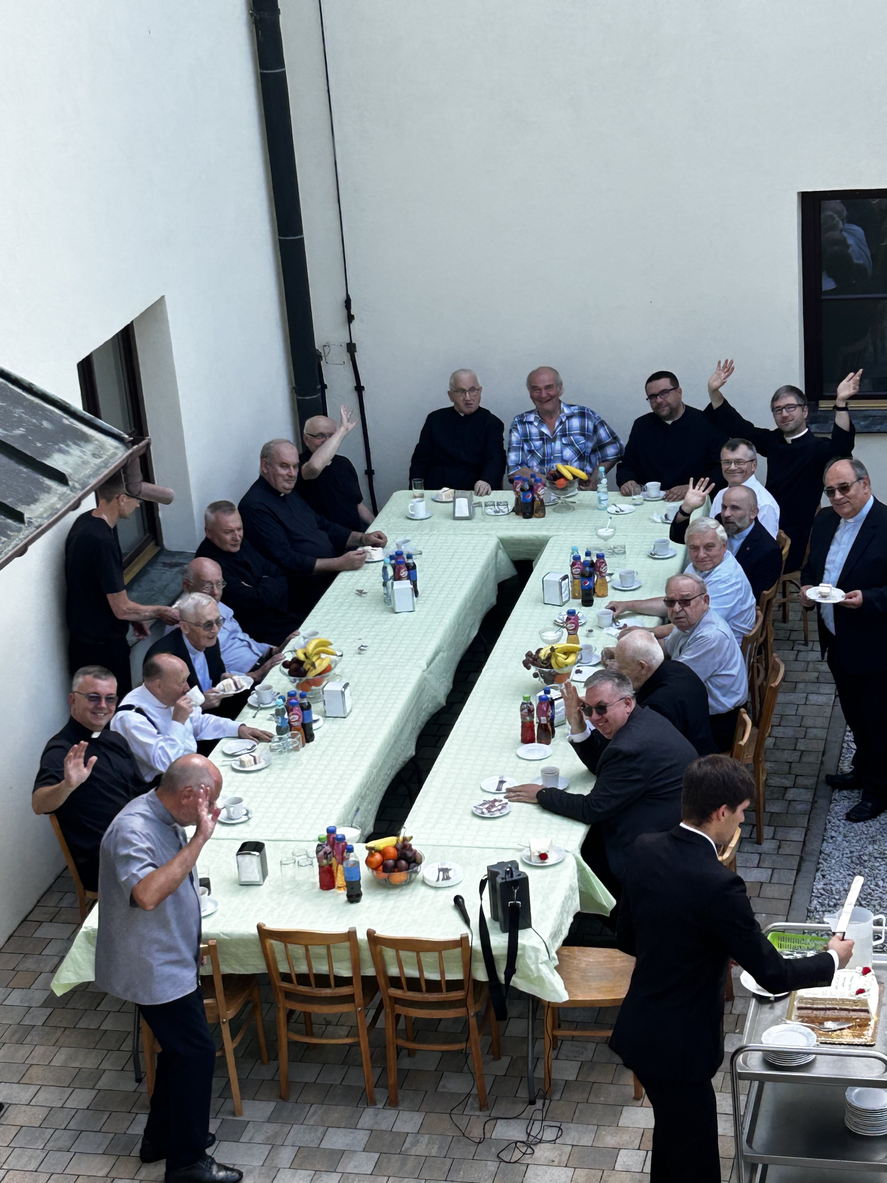 Wielu spośród nich nie wzięło udziału w uroczystościach jubileuszowych z powodu trudności związanych z podróżą (Indonezja, Ukarania, Chorwacja) oraz ze względu na stan zdrowia. Ostatecznie cieszyliśmy się obecnością 4 współbraci, którzy podczas Mszy św. na ręce prowincjała ks. Sławomira Knopika odnowili swoje śluby zakonne. Homilię wygłosił ks. Bogdan Kuta. Po uroczystym obiedzie spotkaliśmy się w klasztornym wirydarzu, aby skosztować jubileuszowego tortu, bliżej poznać sylwetki naszych dostojnych jubilatów, powspominać „stare dobre czasy” oraz wręczyć im drobne upominki. Za część artystyczną odpowiedzialny był nowicjusz Wojciech.