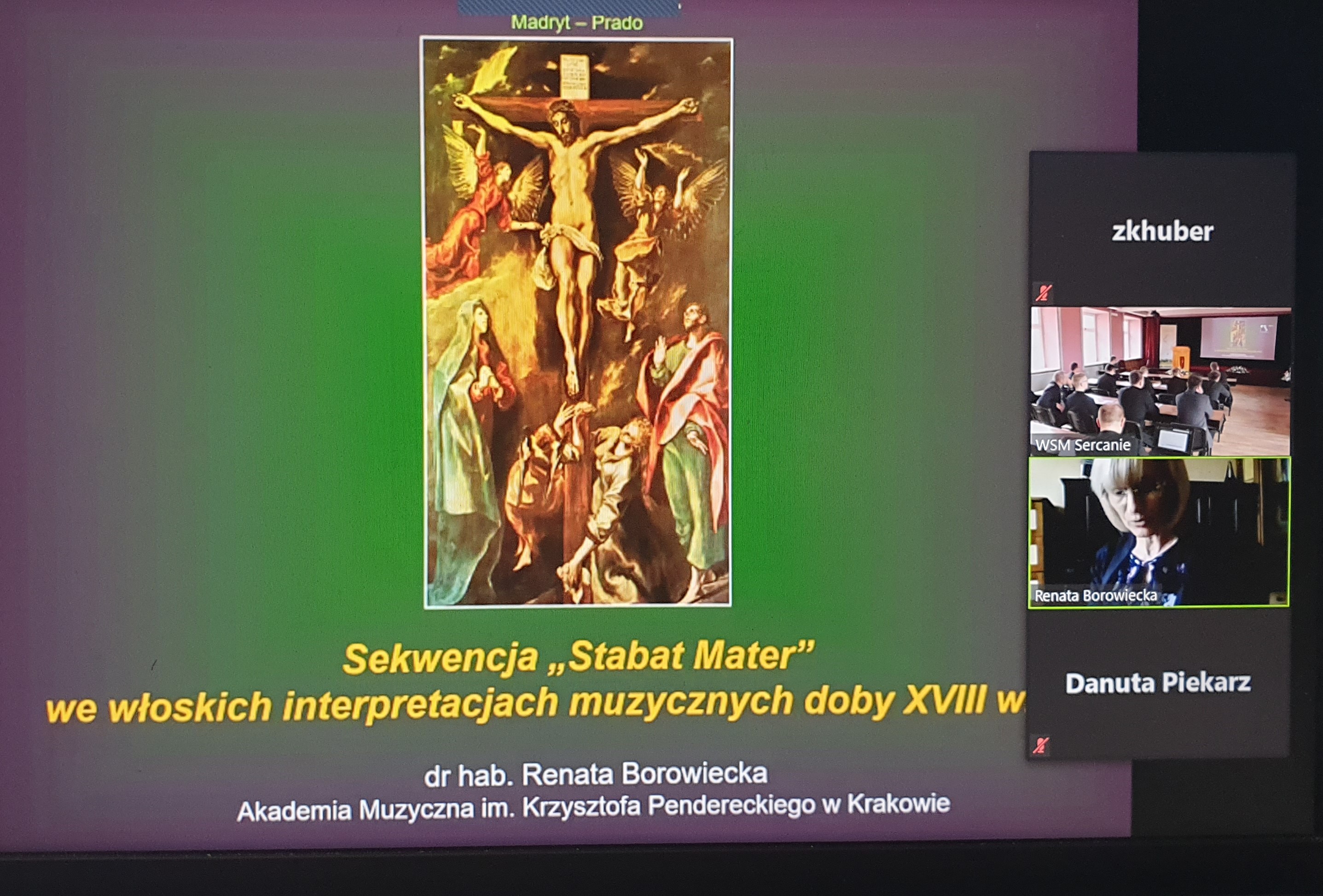 dr hab. Renata Borowiecka (Akademia Muzyczna im. Krzysztofa Pendereckiego w Krakowie) (Sekwencja „Stabat Mater” we włoskich interpretacjach muzycznych doby XVIII wieku)