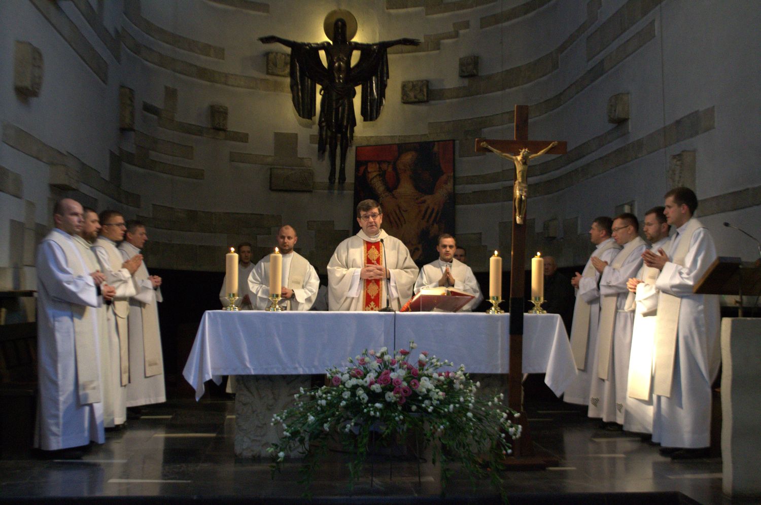 Sercem konferencji była Msza św., sprawowana w kościele akademickim. Przewodniczył jej i kazanie wygłosił ks. Jan Strzałka SCJ, dyrektor Domu Fundacja Jana Pawła II w Lublinie. Kaznodzieja ukazał Eucharystię, jako apogeum Bożego miłosierdzia i zachęcał wszystkich jej uczestników, aby na co dzień byli świadkami tej Miłości miłosiernej. W czasie Eucharystii w sposób szczególny modliliśmy się o łaskę zdrowia dla naszego pana mecenasa Macieja Bednarkiewicza.