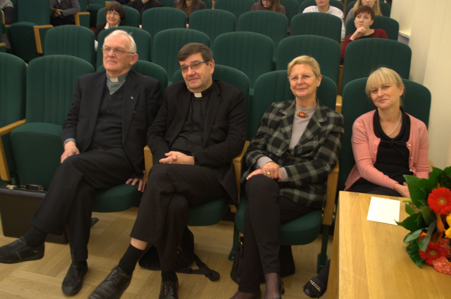 Na spotkanie z biskupem Grzegorzem Rysiem przyszła tak liczna grupa słuchaczy, że aula nie była w stanie ich wszystkich pomieścić. Tematyka wystąpienia księdza biskupa skupiała się wokół wolontariatu w kontekście asertywności. „Czym jest wolontariat? Czy chrześcijanin może być asertywny”? – pytał ksiądz biskup. I odpowiadał: „W wolontariacie chodzi o wdzięczność. Kto nie ma doświadczenia obdarowania, ten nie powinien brać aktywnego udziału w wolontariacie, gdyż będzie to dla niego jedynie przygoda, bez właściwej jej głębi. Prawdziwy, chrześcijański wolontariat to nie jest tylko wypełnianie obowiązku i odpowiedź na potrzeby drugiego człowieka, ale przede wszystkim odpowiedź na swoje pragnienie znalezienia Pana Boga. Jezus sam mówi, że nie tylko kocha przybysza, ale sam jest przybyszem – bo byłem głodny, a daliście Mi jeść; byłem przybyszem, a przyjęliście Mnie” itd. „Asertywność jest przeciwieństwem miłosierdzia – kontynuował ks. Biskup Ryś – musimy wybrać miłosierdzie, które jest reakcją prawdziwie chrześcijańską, szybką i bezpośrednią. Jest troską o konkretnego bliźniego, a nie czymś ogólnym. Musimy być, jak matka, której dziecko mocno się skaleczyło. Ona, widząc to, nie buduje od razu szpitala, nie zakłada uniwersytetu, który kształci personel medyczny, ale natychmiast szuka wody utlenionej, bandaża i opatruje ranę”. Całość wystąpienie bpa Grzegorza Rysia można wysłuchać tutaj