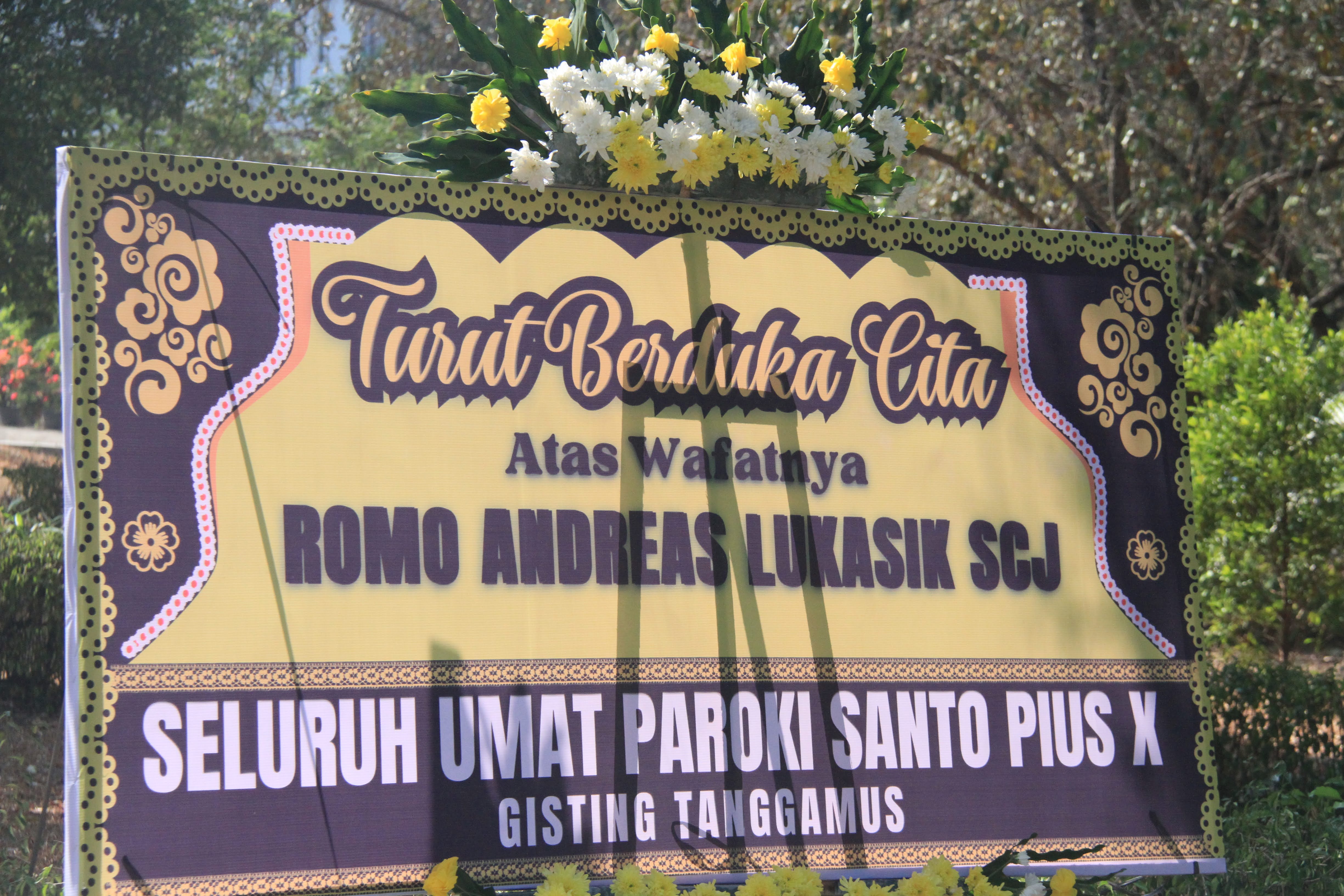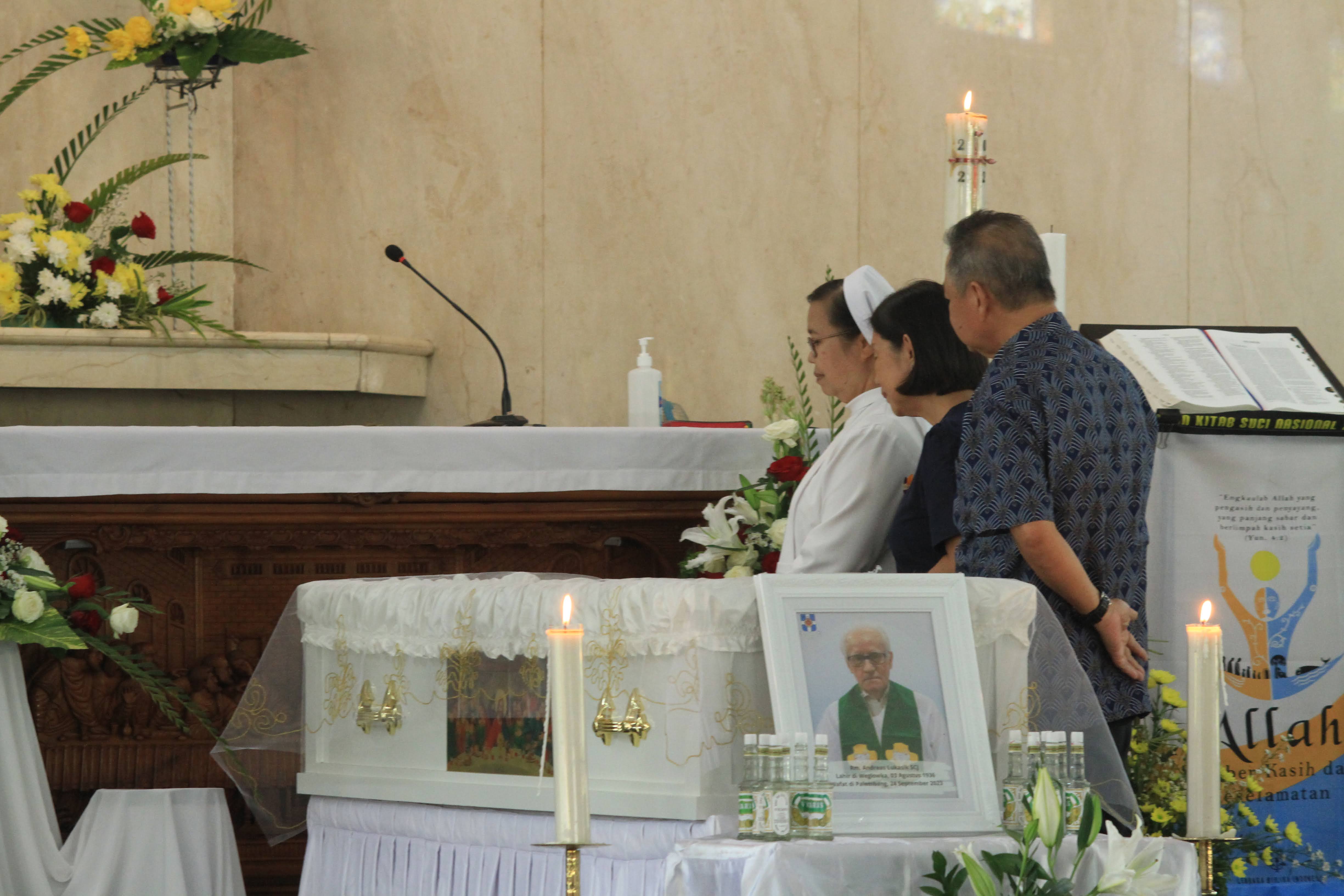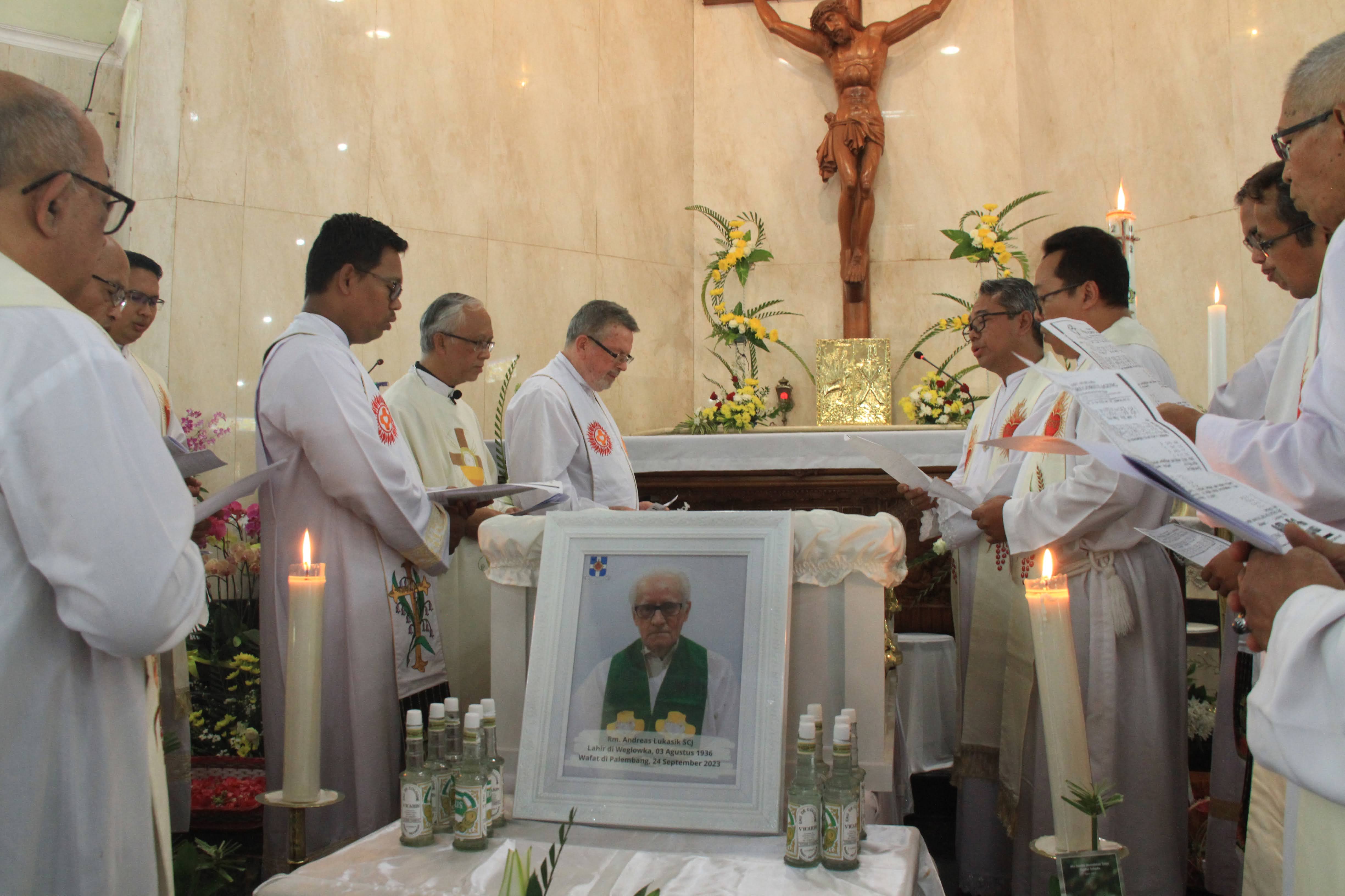 W poniedziałek 25 września o godz. 19.00 w Palembang w intencji zmarłego ks. Andrzeja Łukasika SCJ została odprawiona Msza św. żałobna, której przewodniczył biskup Palembang. We wtorek ciało śp. ks. Andrzeja zostało przewiezione do Pringsewu w prowincji Lampung, gdzie spędził on prawie całe swoje życie misyjne. Natomiast w środę 27 września o godz. 10.00 czasu indonezyjskiego Mszy św. pogrzebowej przewodniczył biskup Tanjungkarang Lampung.