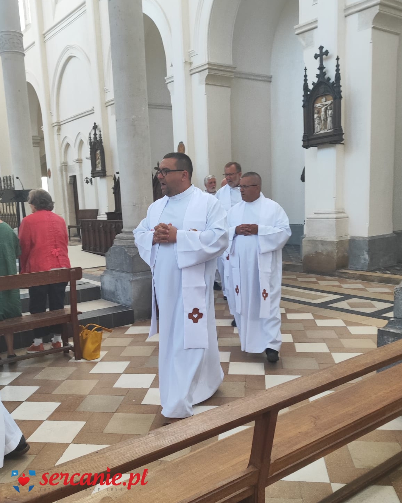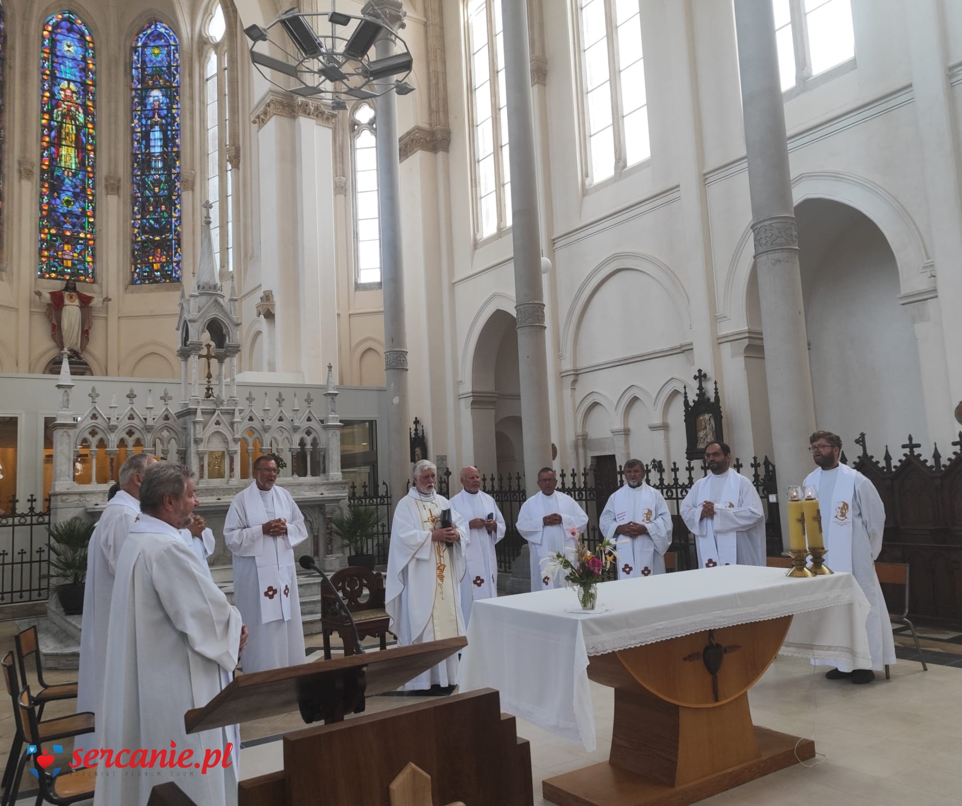 Ks. Wiesław przewodniczył Mszy Świętej, która rozpoczęła czwarty dzień pielgrzymowania, poświęcony refleksji nad naszym charyzmatem, przekazanym nam przez Założyciela. Dzień był wyjątkowo bogaty we wrażenia krajoznawcze, gdyż był próbą, by w ciągu ok. 12 godzin zobaczyć to, co najistotniejsze w Paryżu. Szybka kolejka zawiozła grupę pod odnowioną katedrę Notre-Dame, do której udało się wejść niejako z marszu. Odnowione mury zachwycały pięknem, czystością i dążeniem do zachowania tego, co nie przeminęło od 1163, kiedy to rozpoczęto jej budowę. Po opuszczeniu katedry, trasa zwiedzania prowadziła w kierunku budynków Sorbony, gdzie tajniki prawa poznawał młody Leon Dehon. Przechodząc w kierunku kościoła św. Sulpicjusza, parafii Założyciela z czasów studiów i jego paryskiego centrum duchowości, udało się zobaczyć budynek Panteonu i Ogrody Luksemburskie. Z kolei w kościele dawnego opactwa Saint-Germain-des-Prés, grupa modliła się przy grobie (zawierającym jednak jedynie serce) króla Jana Kazimierza, który tam był opatem komendatoryjnym po przybyciu do Francji. Przed obiadem udało się również nawiedzić sanktuarium objawień Cudownego Medalika z grobami śś. Ludwiki Marillac i Katarzyny Labouré. Krótka wizyta na placu Trocadéro ukazała piękną perspektywę wierzy Eiffla, po czym spacer po Polach Elizejskich między Łukiem Triumfalnym a Placem Zgody pozwolił obcować z jednym z najbardziej rozpoznawalnych fragmentów Paryża. Dzień zakończył się adoracją w Bazylice Najśw. Serca na paryskim wzgórzu męczenników (Montmartre), miejscu, które powstawało „na oczach” Założyciela i w którego konsekracji miał brać udział.