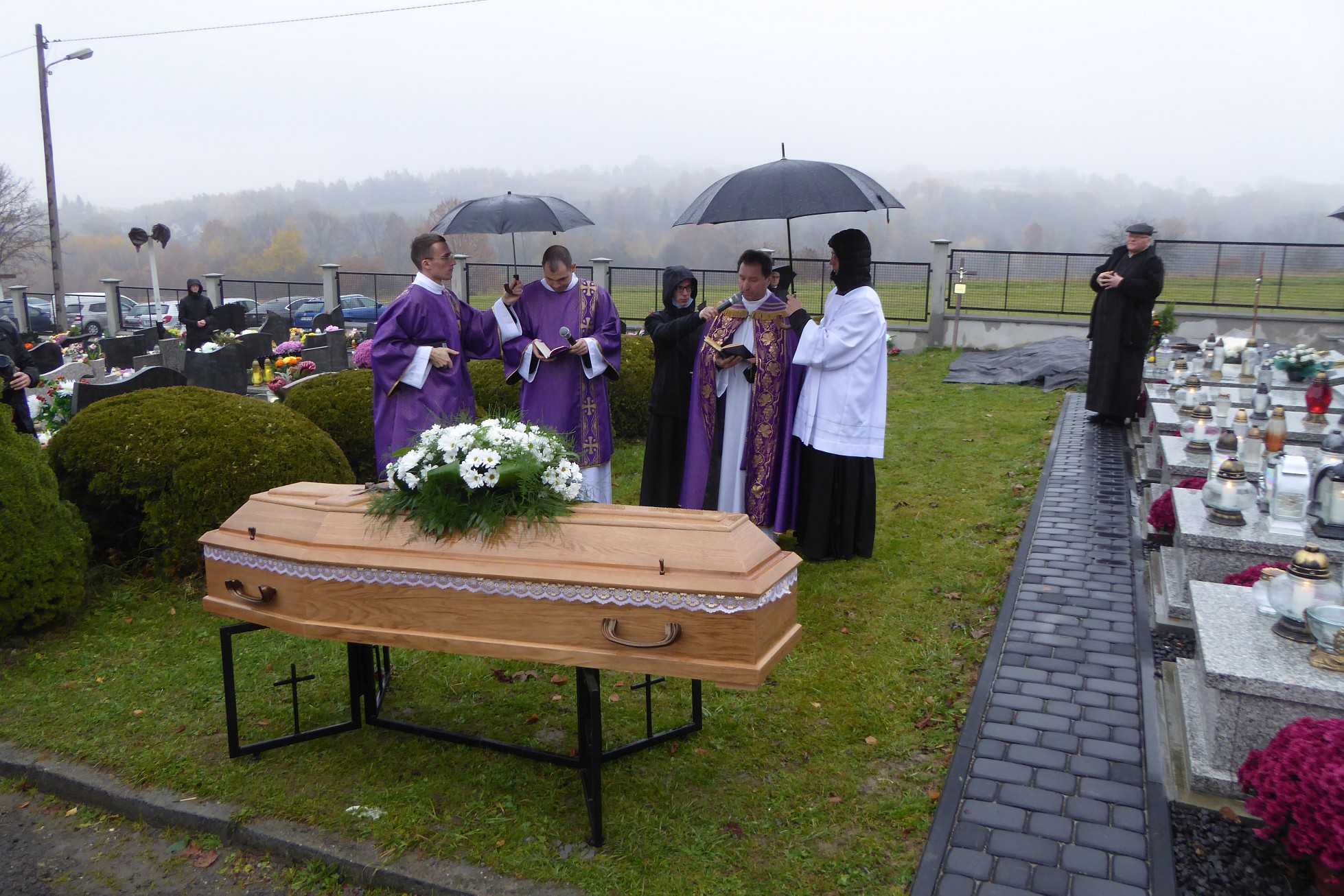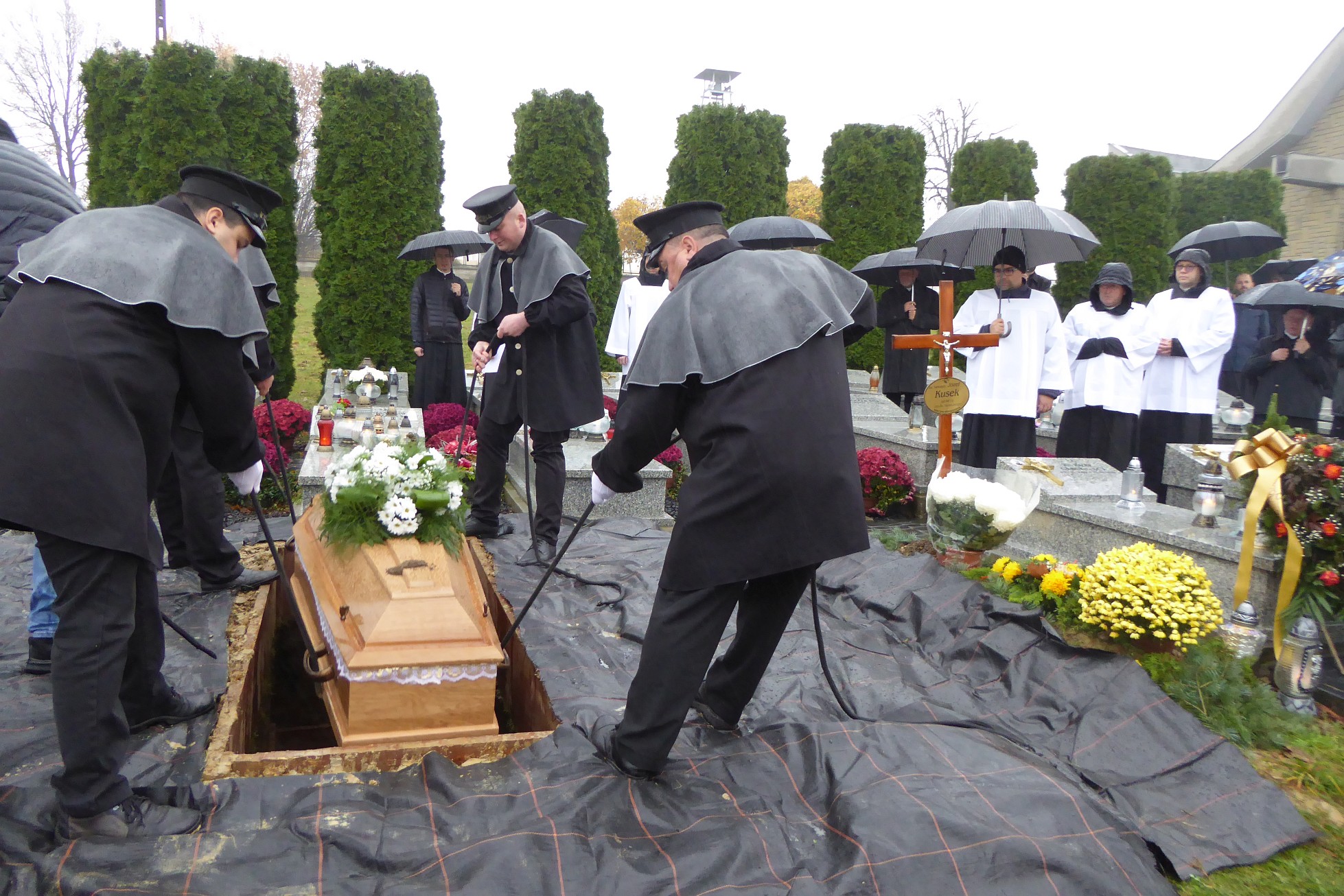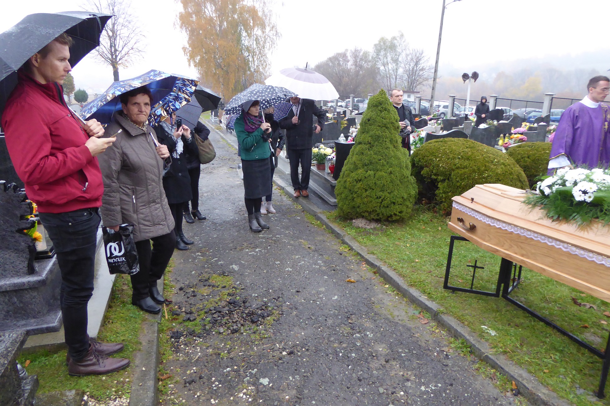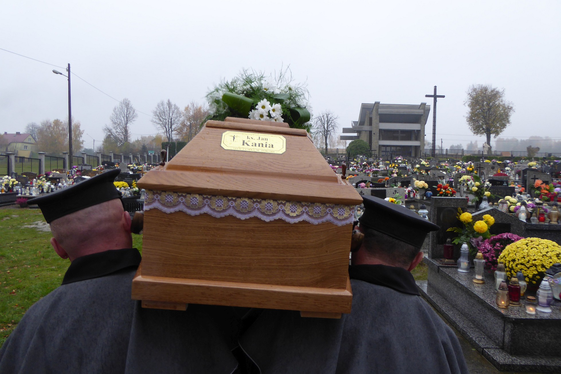 Po czym ciało śp. księdza Jan Kani zostało przewiezione na cmentarz i złożone w grobie. Jeszcze te ostatnie słowa wypowiedziane przez żegnającą go rodzinę: