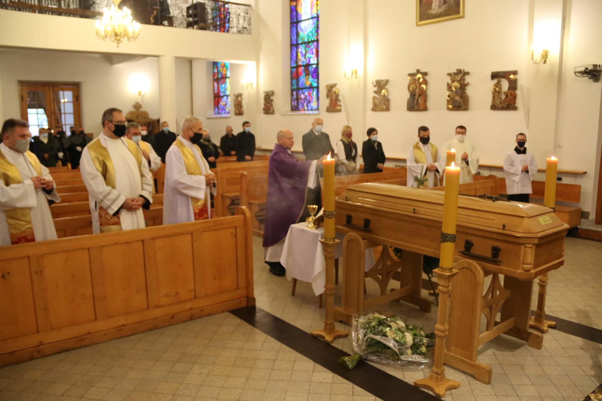 Mszy św. pogrzebowej w stadnickim kościele przewodniczył w gronie kilkunastu koncelebransów prowincjał ks. Wiesław Święch SCJ. Swego kolegę przyjechał pożegnać także ks. Józef Hojnowski, emerytowany proboszcz parafii w Górce Kościelnickiej, pochodzący z Jadownik. Z powodu pandemii w pogrzebie wzięła udział ograniczona ilość osób.