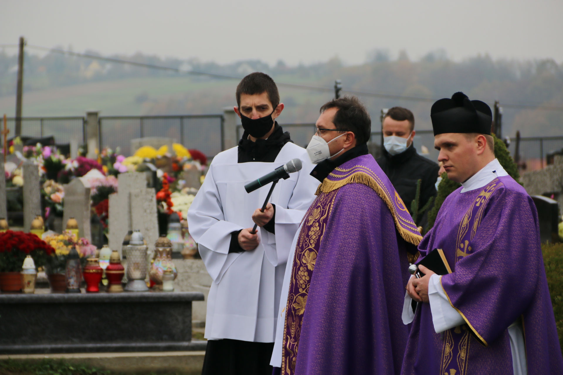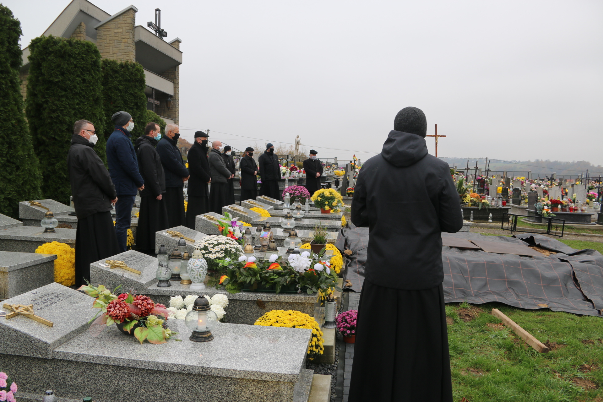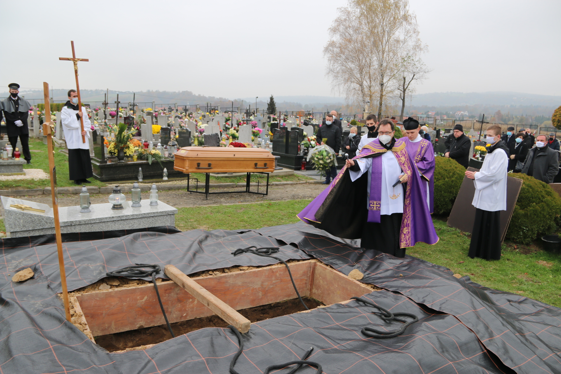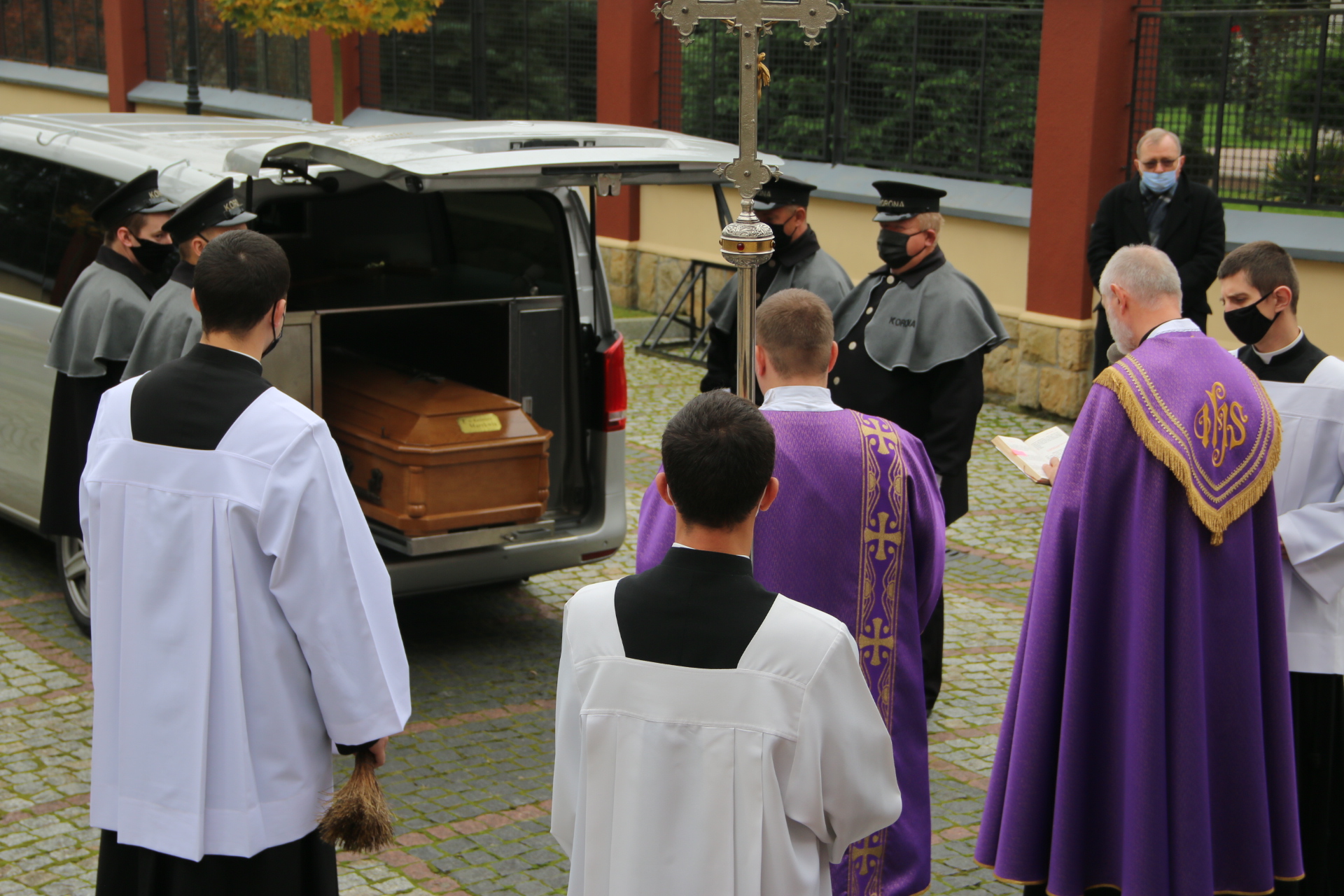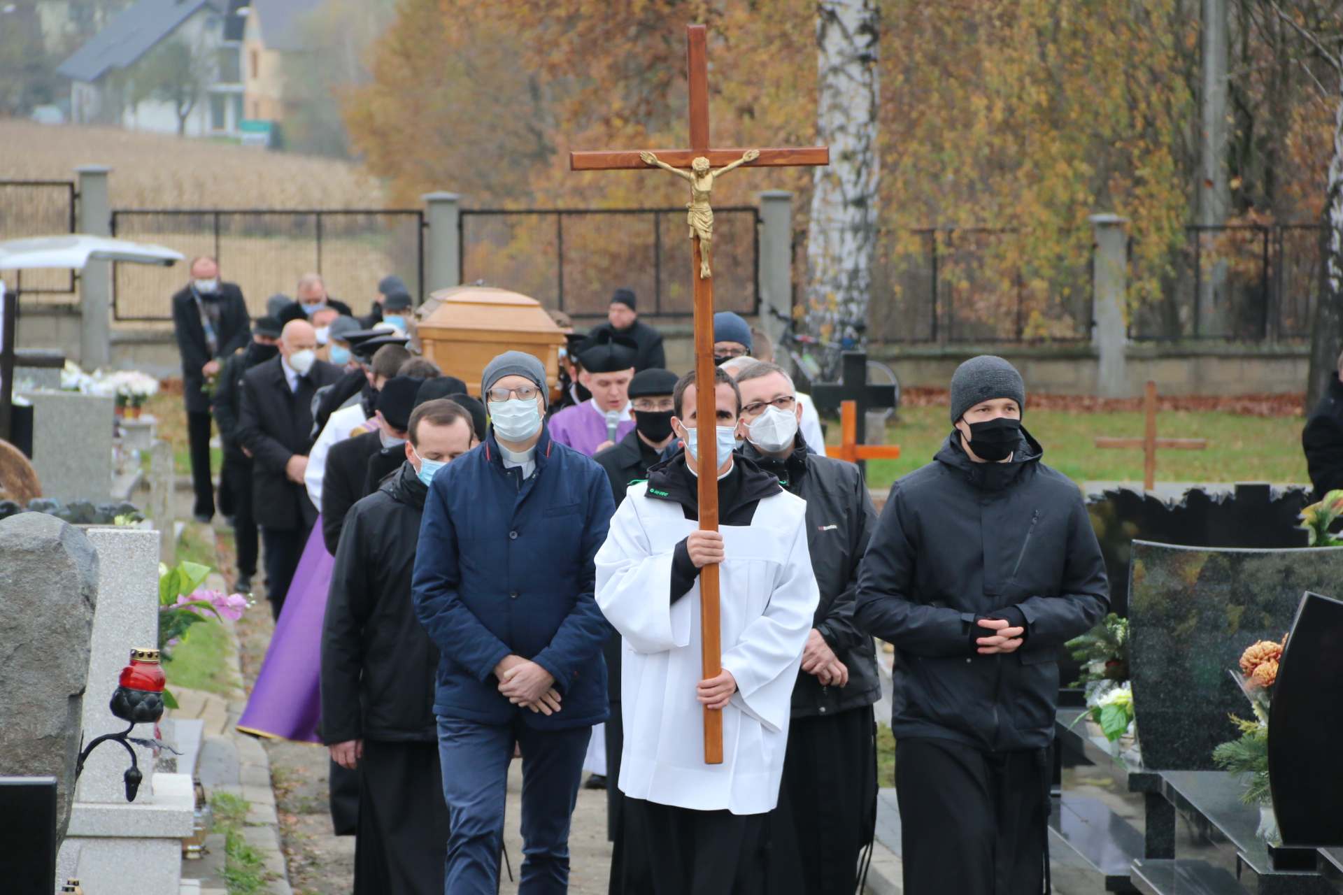 Tym razem po Mszy św. pogrzebowej, kondukt żałobny nie szedł na cmentarz, a ostatnia część obrzędów pożegnania rozpoczęła się przy bramie cmentarnej. Modlitwy na cmentarzu prowadził ks. Bieszczad, a zakończył je wspólny śpiew „In te Cor Jesu”.