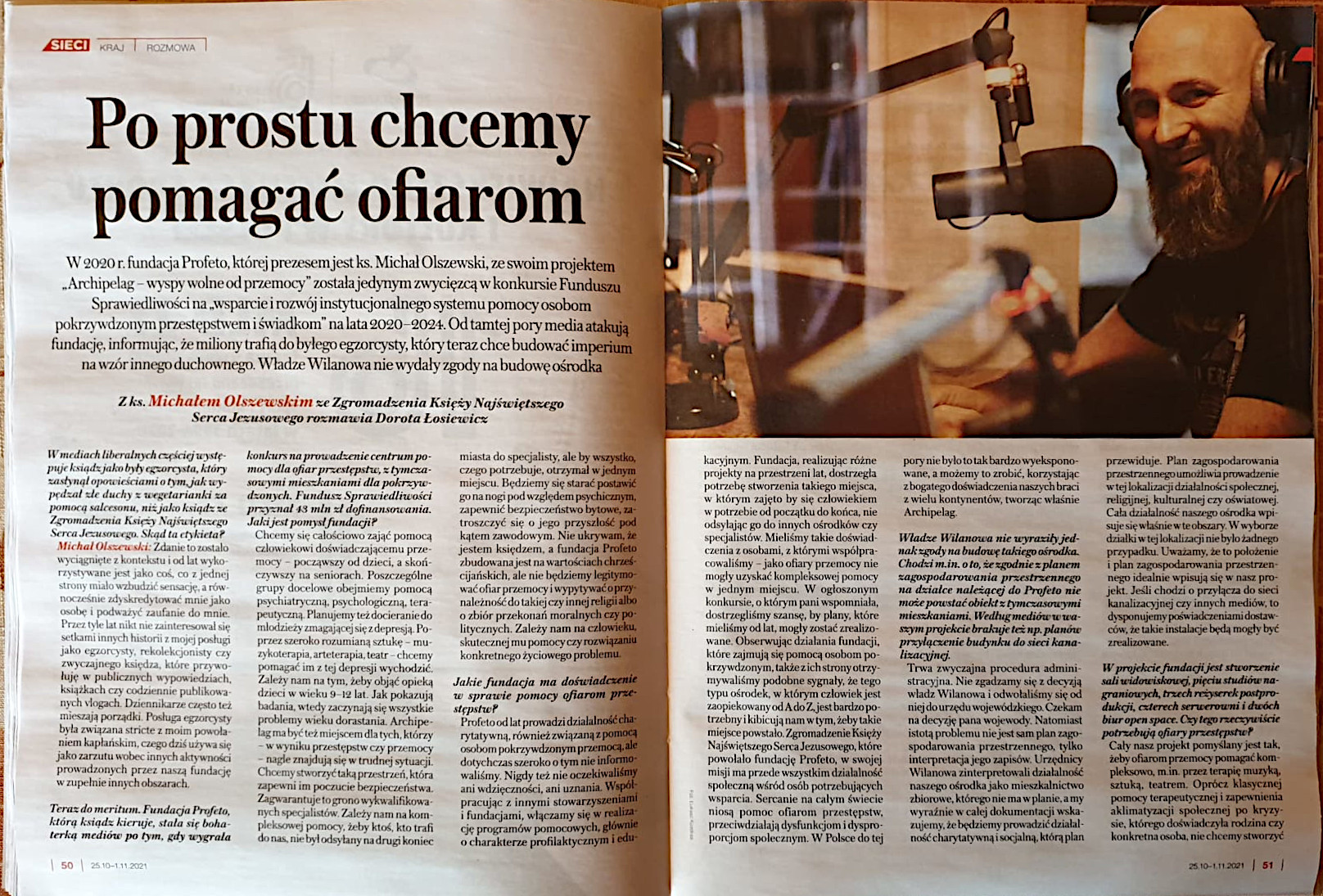 Jedną z idei pracy dla potrzebujących jest stworzenie projektu „Archipelag – wyspy wolne od przemocy”, w którym miano by pomagać osobom pokrzywdzonym różnymi przestępstwami. Jednak projekt ten z jakiegoś powodu jest trudno zrealizować mimo, że tylu potrzebujących mogłoby z niego skorzystać. Pisano o tym całkiem niedawno w Tygodniku Sieci Nr 43 (465) 2021, s. 50-52.