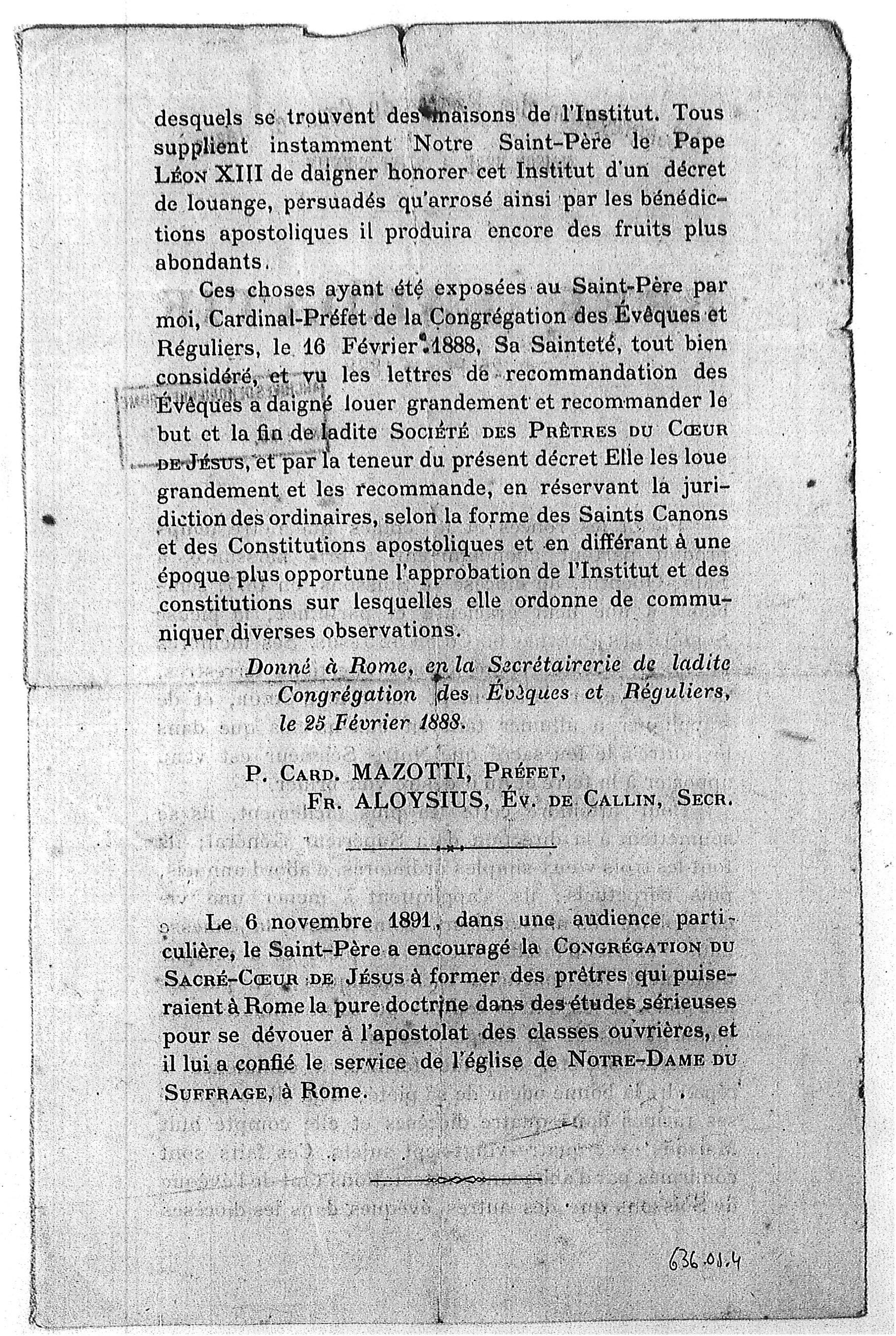 Dan w Rzymie, w sekretariacie Świętej Kongregacji Biskupów i Zakonników, dnia 25 lutego 1888 r.