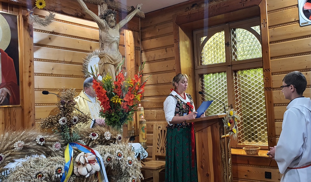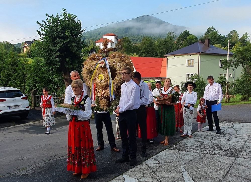 „Nasz Rodak nauczał, by nie odrzucać to, co łączy ludzi większych czy mniejszych społeczności wiejskich. Bo wieś zawsze była swego rodzaju rodziną i silna wiarą. I dopóki taka była, dopóty polska wieś była sobą, ubogacając Ojczyznę nie tylko żywnością, ale także tą kulturą, która trwa wciąż, a przeniesiona do miast nie przestaje zachwycać. Urzeka swoim pięknem, szczerością i prostotą” – podsumował kaznodzieja, który następnie pobłogosławił okazały wieniec żniwny, chleb i przyniesione przez mieszkańców os. Kiece koszyki pełne warzyw, owoców i innych produktów.