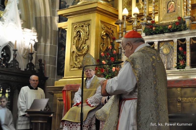 Następnie nowy metropolita otrzymał insygnia jego biskupiej władzy. Na ramiona metropolity - z pomocą ks. Mieszczaka - nałożono haftowany perłami i złotą nicią Racjonał św. Jadwigi, zakładany na wyjątkowe uroczystości religijne przez arcybiskupów krakowskich. Następnie nuncjusz przekazał metropolicie pastorał - symbol władzy pasterskiej - i odprowadził do katedry, która jest symbolem urzędu biskupa diecezjalnego. - Co ważne, to nie jest tron. Bardzo często słyszymy, że metropolita zasiadł na tronie. Nie, to jest katedra, bo głównym zadaniem biskupa jest rządzić przez nauczanie - zaznacza ks. Mieszczak. Siedzącemu na katedrze abp. Jędraszewskiemu przedstawiciele duchowieństwa i wiernych złożyli homagium, czyli akt czci, szacunku i chrześcijańskiego posłuszeństwa.