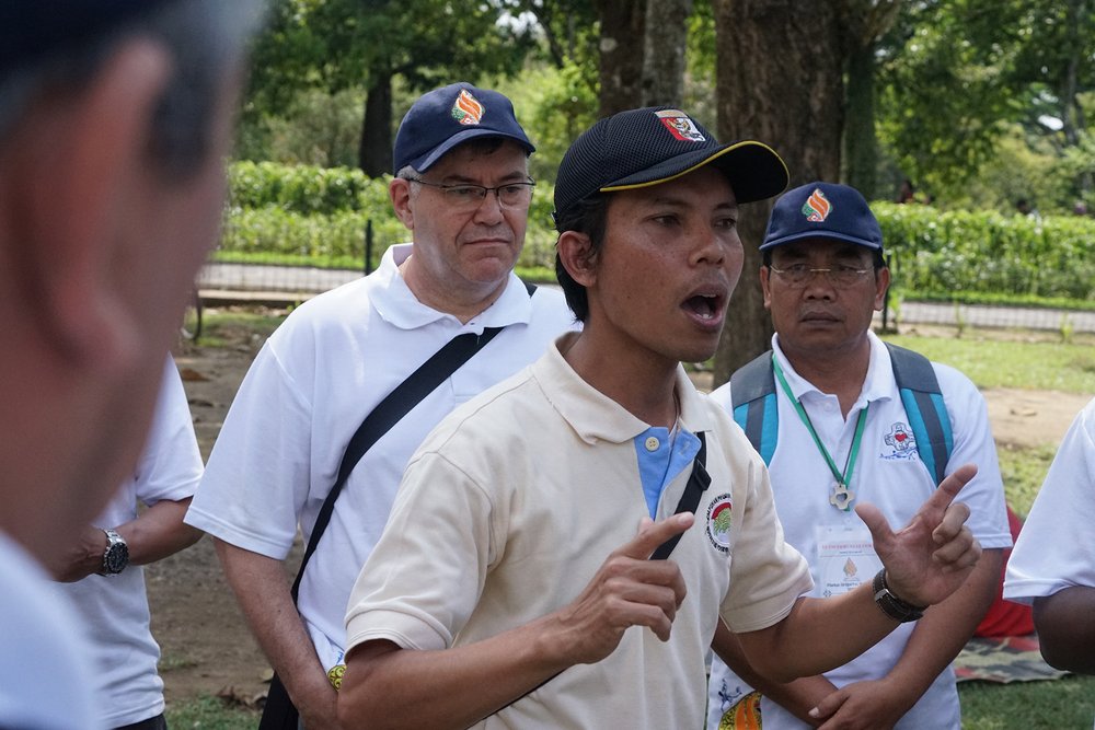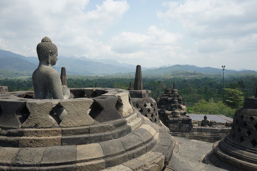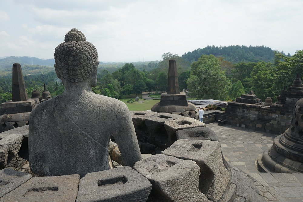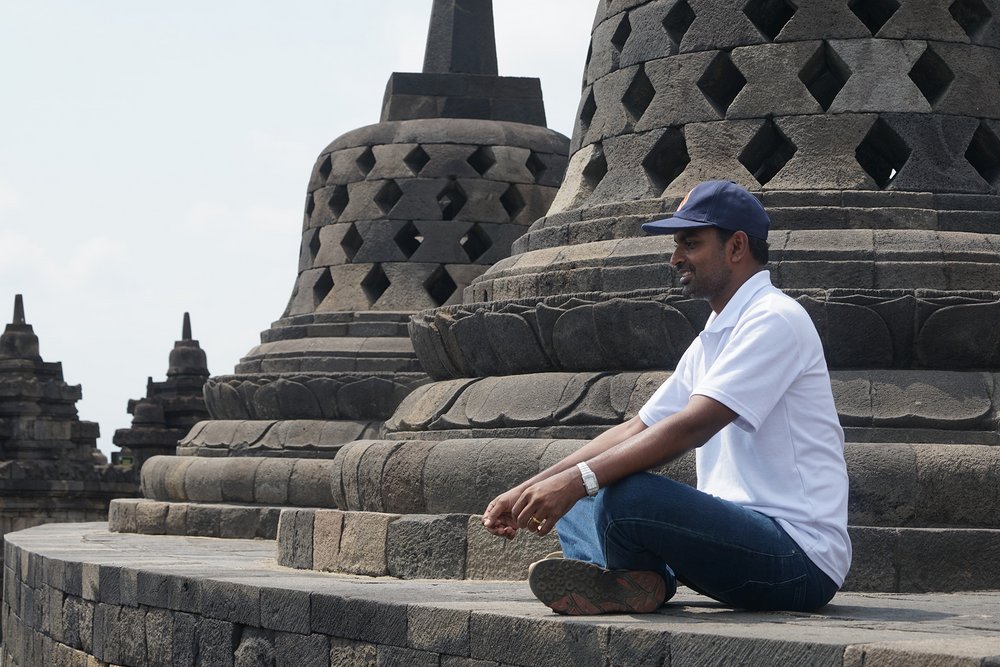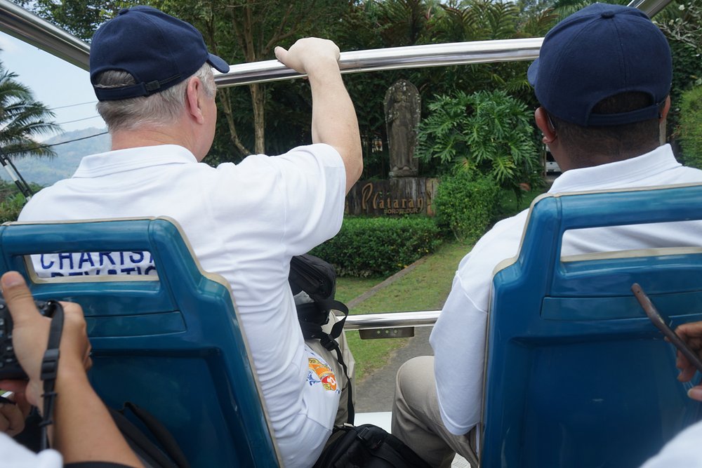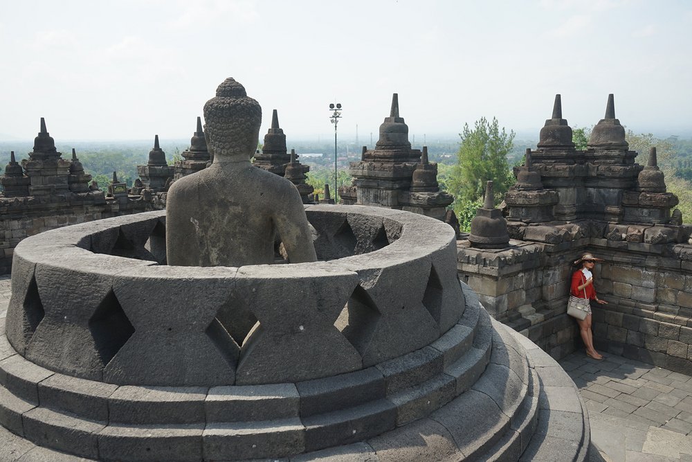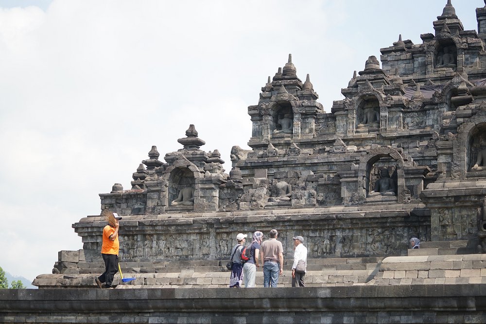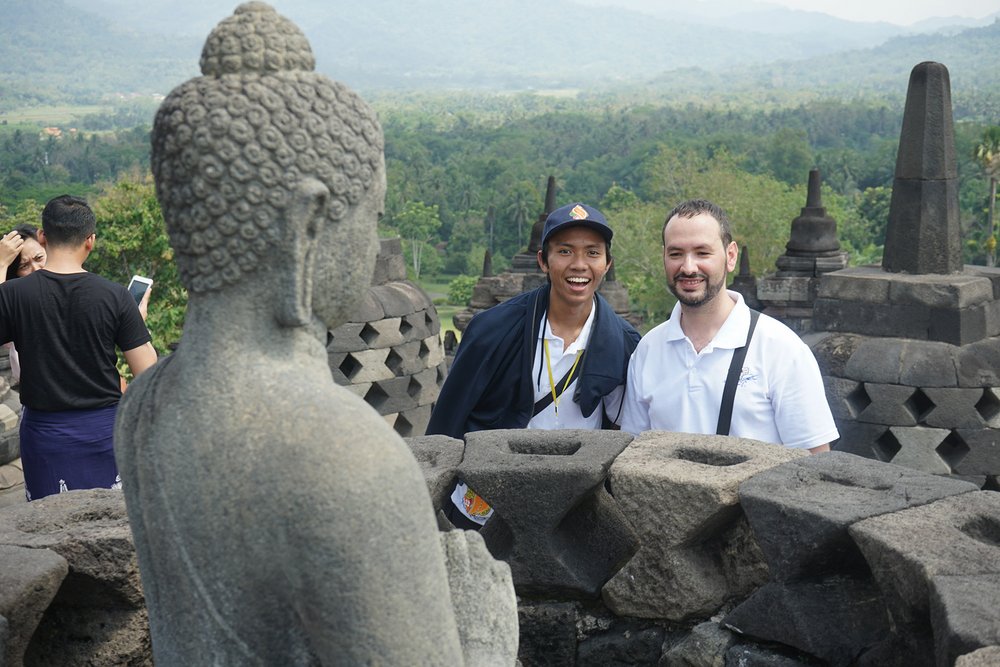 W towarzystwie dwóch przewodników uczestnicy zwiedzili świątynię Borobudur na szczycie. Świątynia Borobudur jest największą na świecie starożytną świątynią buddyjską, zbudowaną w IX wieku. Przewodnicy poprowadzili dwie grupy do góry, wyjaśniając drogę jaką podążał Budda: od ludzkich namiętności do nirwany (stan wewnętrznego pokoju i zjednoczenia z boską ideą).