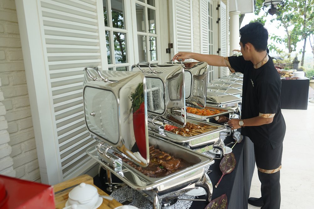 Po obejrzeniu majestatu starożytnej świątyni Borobudur uczestnicy udali się na obiad w jednej z pobliskich restauracji, z których roztacza się piękny widok na świątynię Borobudur.