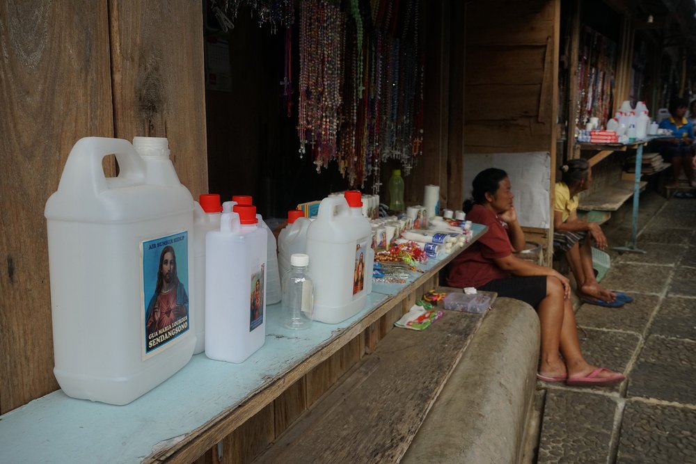 Przybywając do jaskini Maryi w Sendangsono uczestnicy modlili się przez wstawiennictwo Maryi Królowej w ponad 15 językach. Potem niektórzy obmyli ręce i twarz wodą ze źródła w grocie, zgodnie z tradycją zapożyczoną ze świata muzułmańskiego.