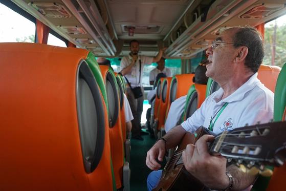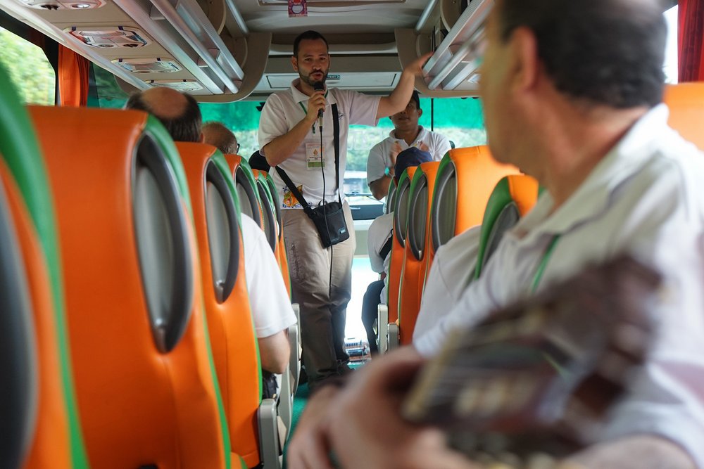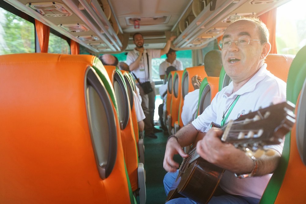 Podróż rozpoczęła się o 9:00 w dwóch autobusach, podzielonych według grup językowych. Minęło półtorej godziny nim uczestnicy z Domu rekolekcyjnego Syantikara dotarli do Świątyni Borobudur. Przed wejściem do świątyni, sercanie odwiedzili rodzinę jednego z indonezyjskich współbraci. Jego rodzina zaoferowała napoje i lokalne specjały.