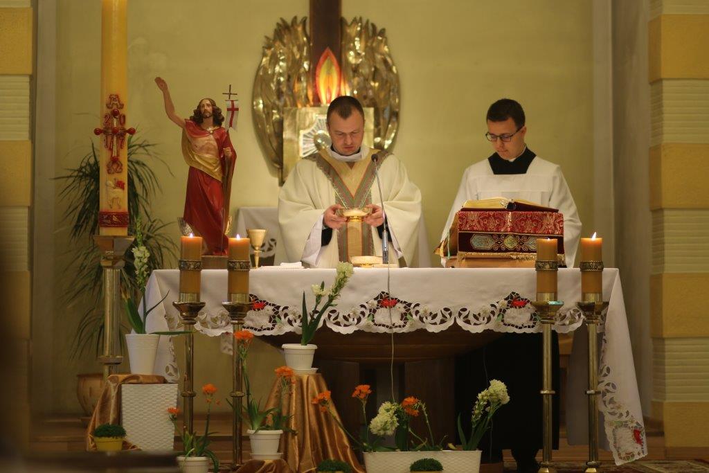 O godzinie 11.00 rozpoczęła się Eucharystia, której przewodniczył ks. Piotr Chmielecki SCJ, zastępca sekretarza Misji Zagranicznych. Nad pięknem liturgii czuwali miejscowi klerycy. Na wielu gościach śpiewy, dym kadzidła, dostojność i brak pośpiechu podczas modlitwy zrobiły duże wrażenie. Kazanie wygłosił ks. Chwaja, który wiele miejsce poświęcił tajemnicy powołania, również do pracy na misjach, z racji że spotkanie przypadło w „Niedzielę Dobrego Pasterza”.
