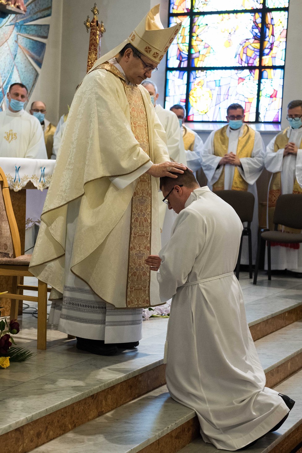 Bezpośrednio po modlitwie święceń wyświęceni nakładają stułę prezbiterów i ornat, będące zewnętrznym znakiem posługi, którą odtąd będą pełnić w liturgii.