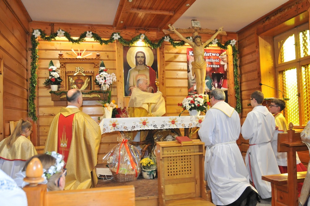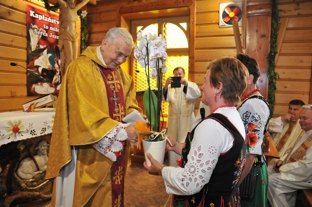 Prosił proboszcza, ks. Andrzeja Sawulskiego, żeby ten diamentowy Jubileusz był skromny. I był przepełniony dziękczynieniem i radością za dar kapłaństwa. Pod Luboń przyjechali bracia kapłani - rodak z Glisnego, ks. prałat Jan Franczak, następcy Jubilata w wadowickiej bazylice - ks. prałat Stanisław Jaśkowiec i ks. Jarosław Żmija. Z bliskiej Wadowicom Choczni przyjechał ks. Zbigniew Bizoń, a ze świątyni Opatrzności Bożej w Warszawie ks. prałat Tadeusz Aleksandrowicz, którego korzenie wyrosły na zagórzańskiej ziemi. Nie mogło zabraknąć kapłanów z dekanatu mszańskiego, na czele z jego dziekanem, ks. prałatem Tadeuszem Dziedzicem, ale także proboszczowie i wikariusze z obu mszńskich parafii, Niedźwiedzia, Poręby Wielkiej, Koniny, Lubomierza, Mszany Górnej, Łętowego, Olszówki i Węglówki. Byli gliśniańscy strażacy, uczniowie i nauczyciele, przewodniczący Rady Gminy Mszana Dolna i chórzyści z parafii św. Michała Archanioła. Kto miał góralskie odzienie, w takim na tę uroczystość, pierwszą w dziejach parafii, się wybrał.