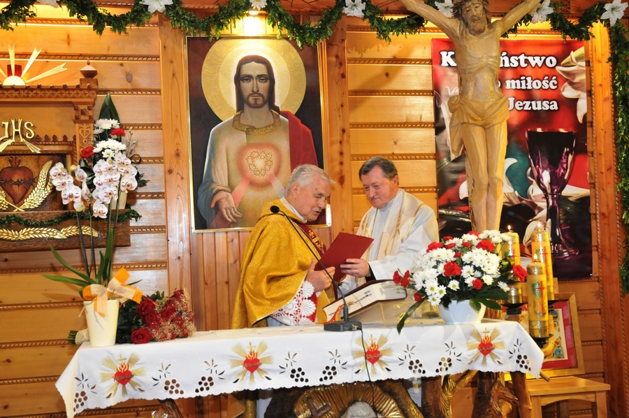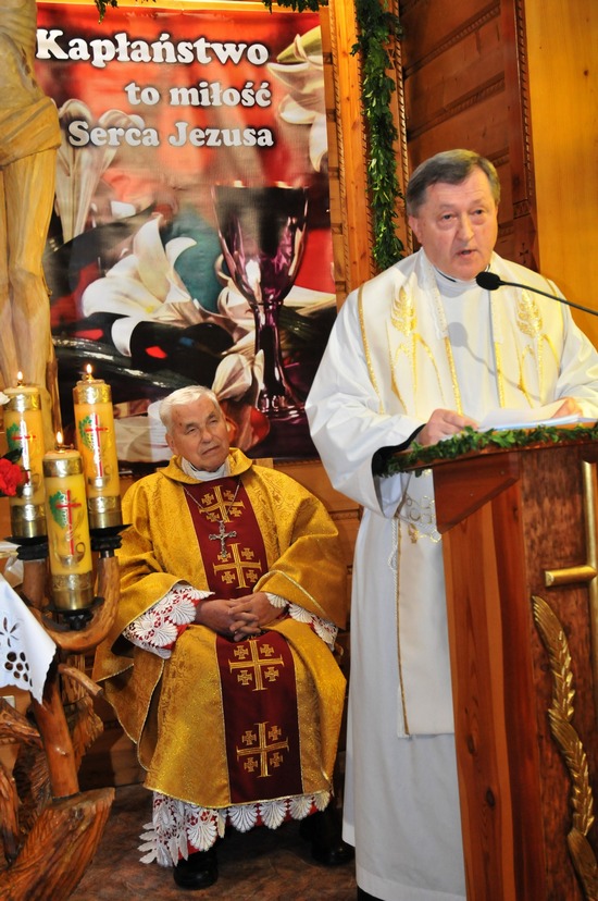 W homilii, ks. Andrzej Sawulski w ciepłych i mądrych słowach zwrócił się do Jubilata - Rodaka: "...znacznie przekroczyłeś już biblijny Rubikon co do wieku życia, ale też lat w kapłaństwie. Dziś możesz powiedzieć za św. Pawłem: W dobrych zawodach wystąpiłem, wiary ustrzegłem. Ale mamy nadzieję, że na wieniec sprawiedliwości jeszcze nie czas. Bieg Twego życia kapłańskiego nadal trwa. Nadal czekają ludzie na Bożą łaskę, którą mogą otrzymać przez Twoje kapłańskie serce i dłonie. I choć może sił ludzkich mniej, to dobrze wiesz, że siłą dla kapłana jest Chrystus, za którym wyruszyłeś ponad 60 lat temu od tych pagórków leśnych i łąk zielonych, by mówić i dać świadectwo o miłującym nas Bożym Sercu."